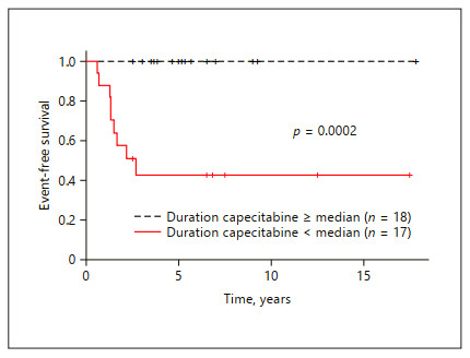 Objective: To assess event-free survival (EFS) of patients who received capecitabine as maintenance therapy following treatment according to current guidelines.