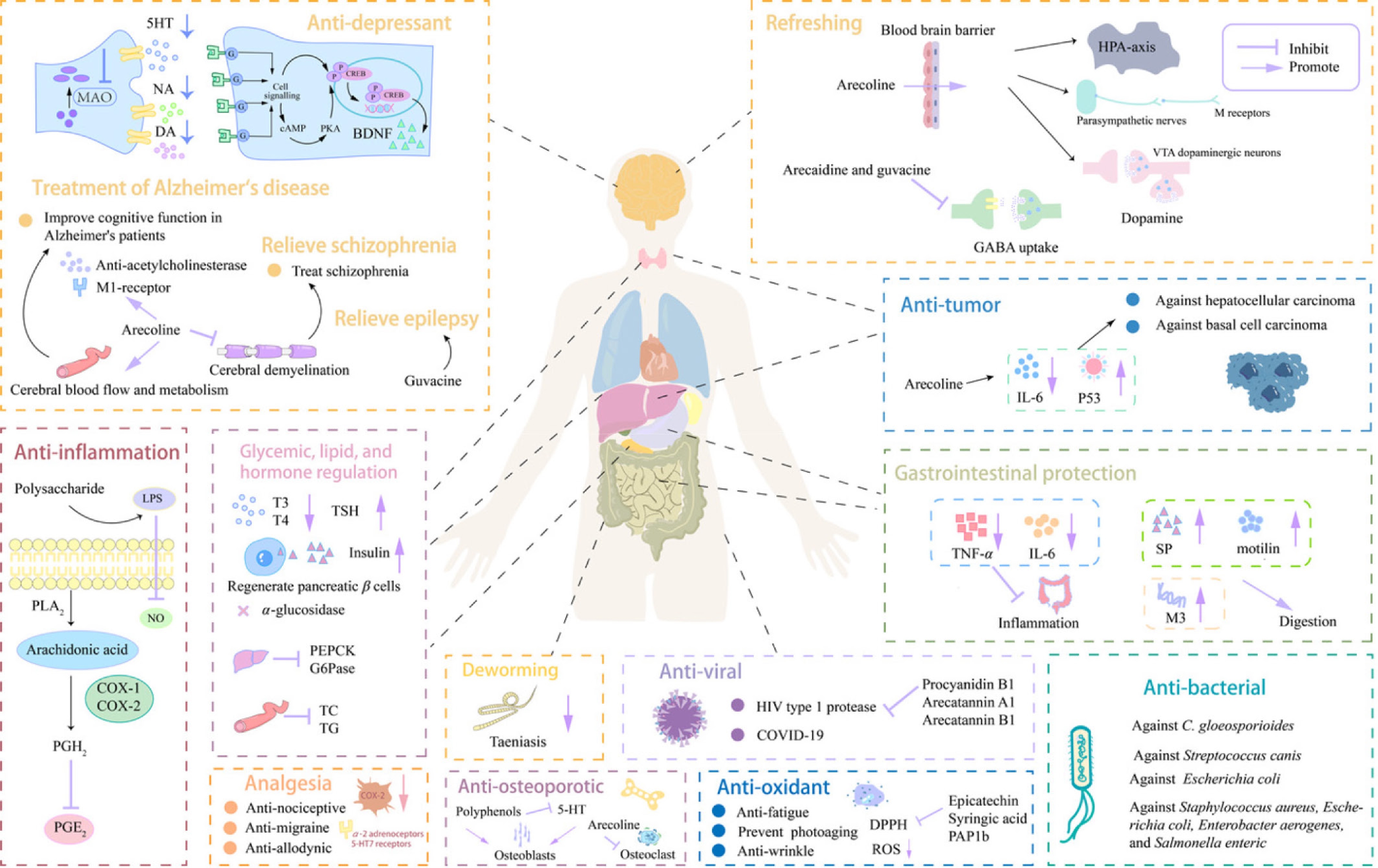 [51] Sun H, Yu W, Li H, Hu X, Wang X. 2024. Bioactive components of areca nut: an overview of their positive impacts targeting different organs. Nutrients 16:695 doi: 10.3390/nu16050695