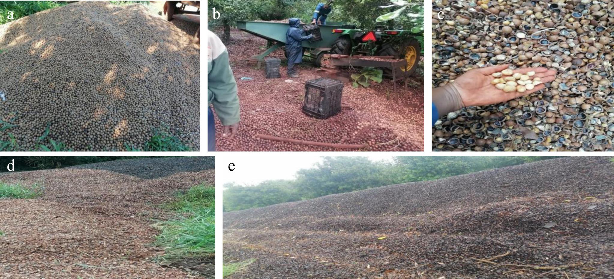 Figure 3 shows the loss of macadamia arising from farmers producing more than what the local buyers and processors can accommodate. The farmers also indicate that they were unable to sell macadamia nuts due to limited or no access to markets emanating from various factors, such as remote location of the farm, lack of transportation, or inadequate market information[29]. The farmers sometimes convert the unsold macadamia nuts into granular form (as shown in Fig. 3c), as this is likely to facilitate decomposition. Macadamia nut shells can be applied as organic manure in open fields, which can help improve soil fertility and structure. By doing so, farmers minimize waste by utilizing unsold macadamia nuts and converting potential waste products into valuable organic manure, which can benefit future crops.