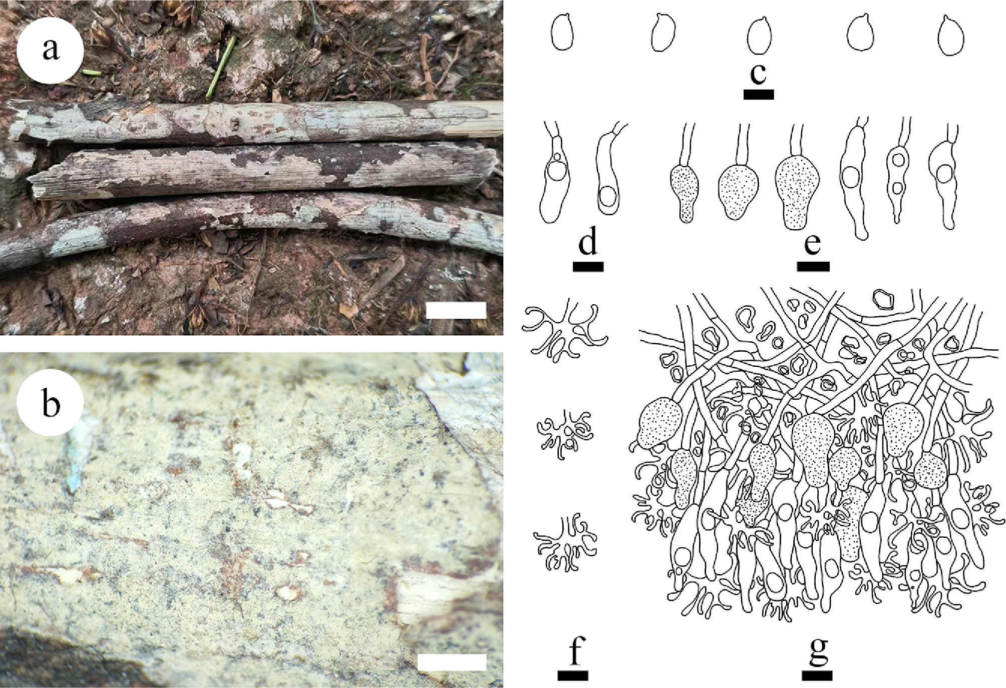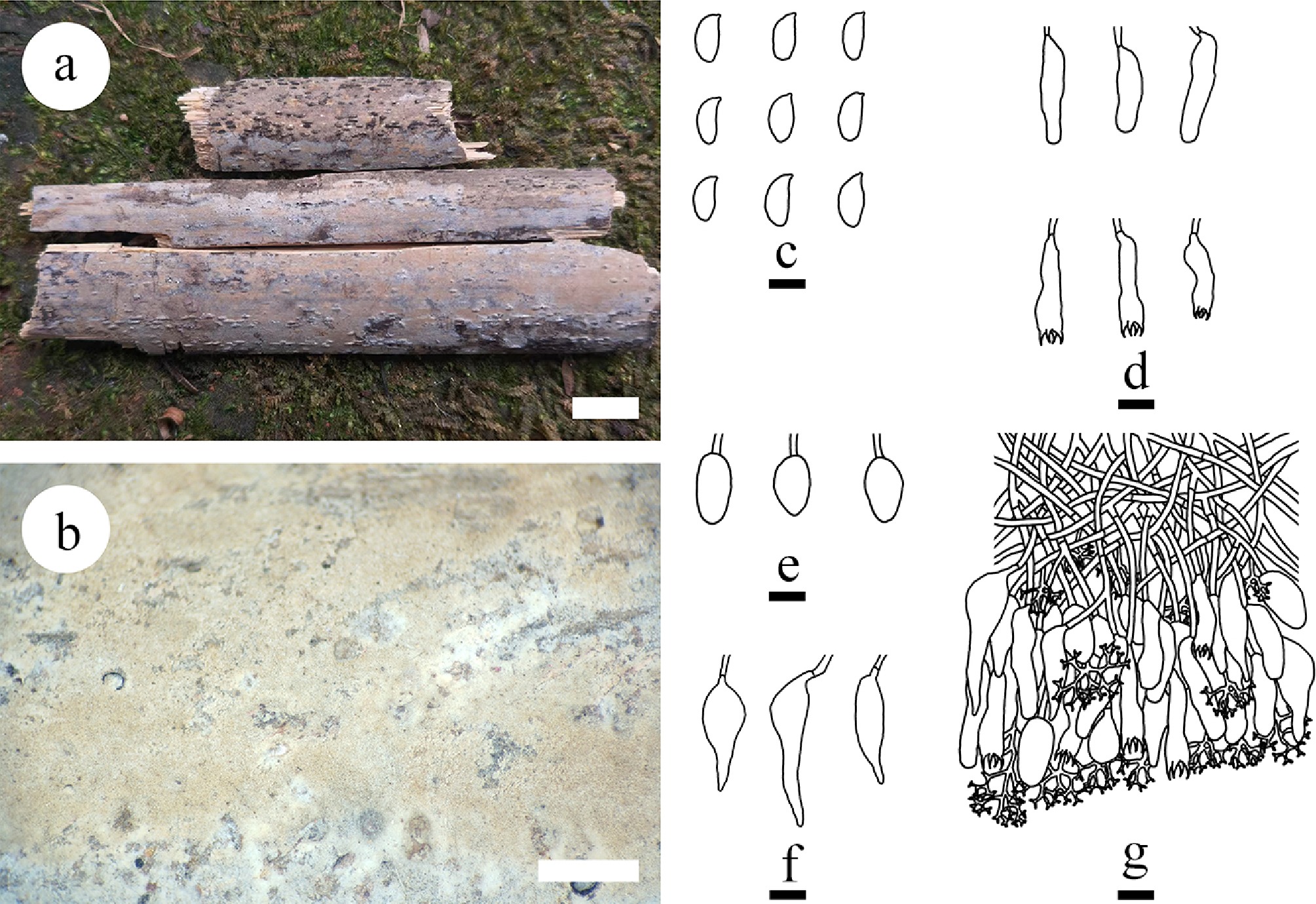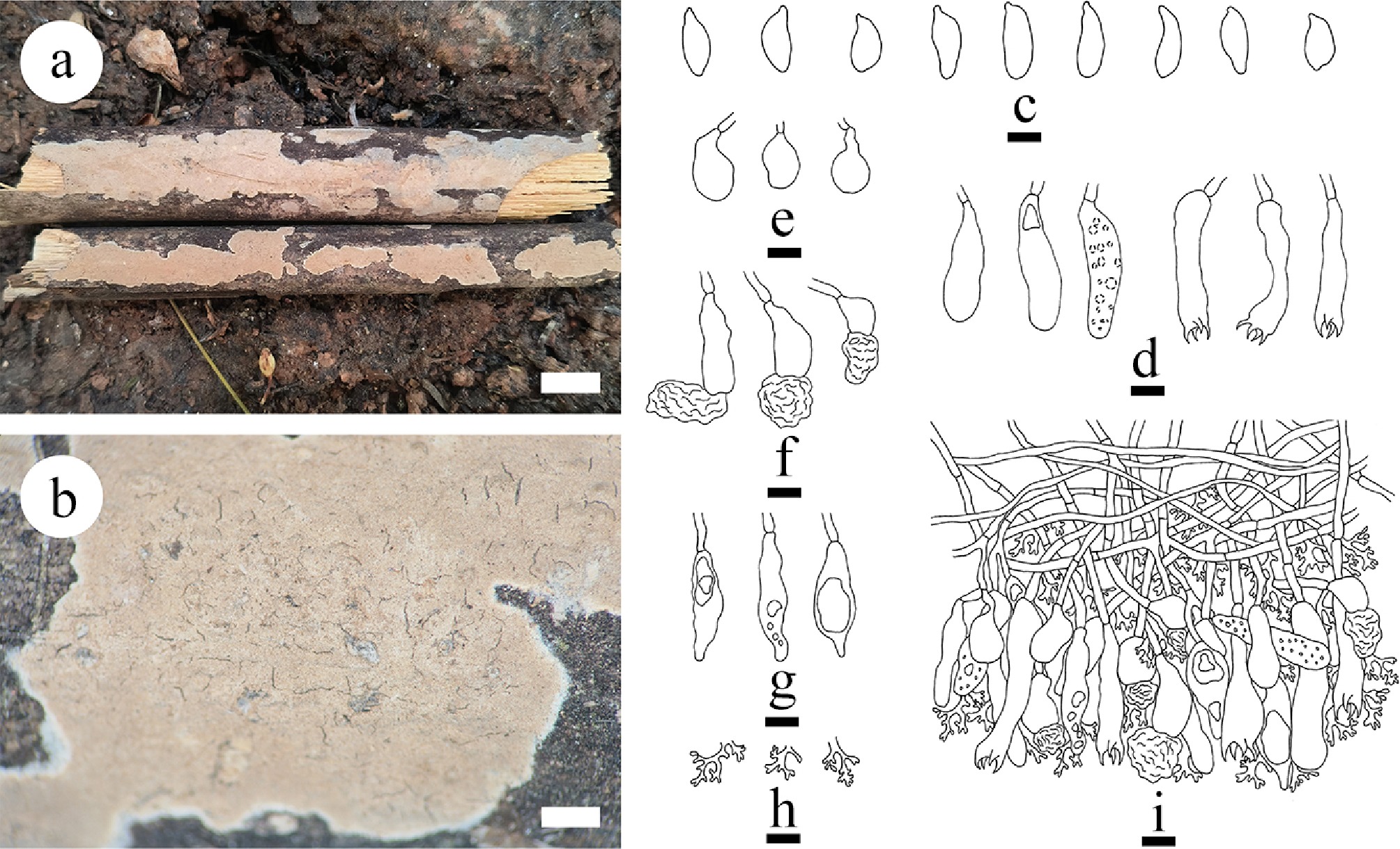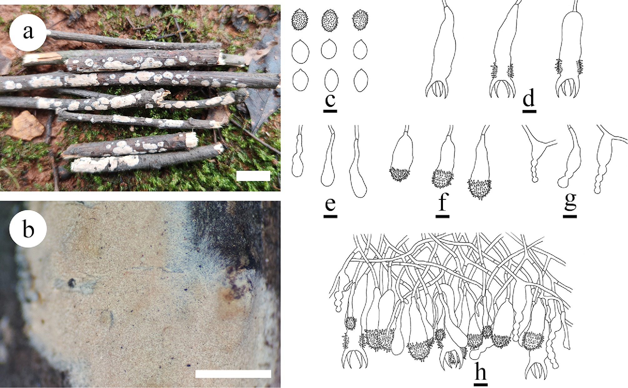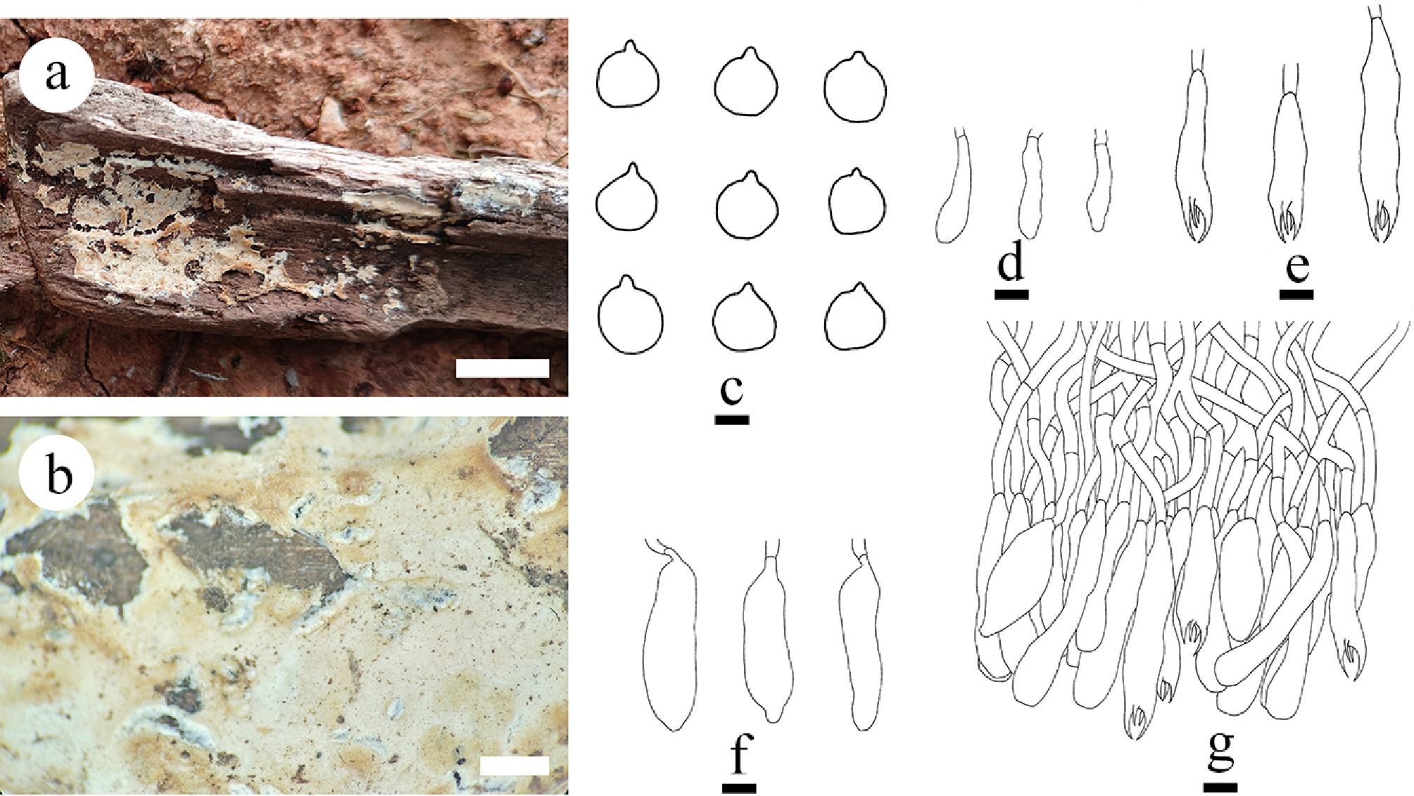 Additiional material examined – China, Yunnan province, Puer City, Xieqipo Park, 101°5' E, 24°0' N, 1,302 m asl, fallen angiosperm branch, leg. C.L. Zhao, 1 October, 2017, CLZhao 3420; Jingdong County, Wuliang Mountain, 100°29' E, 24°38' N, 1,800 m asl, on angiosperm trunk, leg. C.L. Zhao, 5 October, 2017, CLZhao 4317 (SWFC).