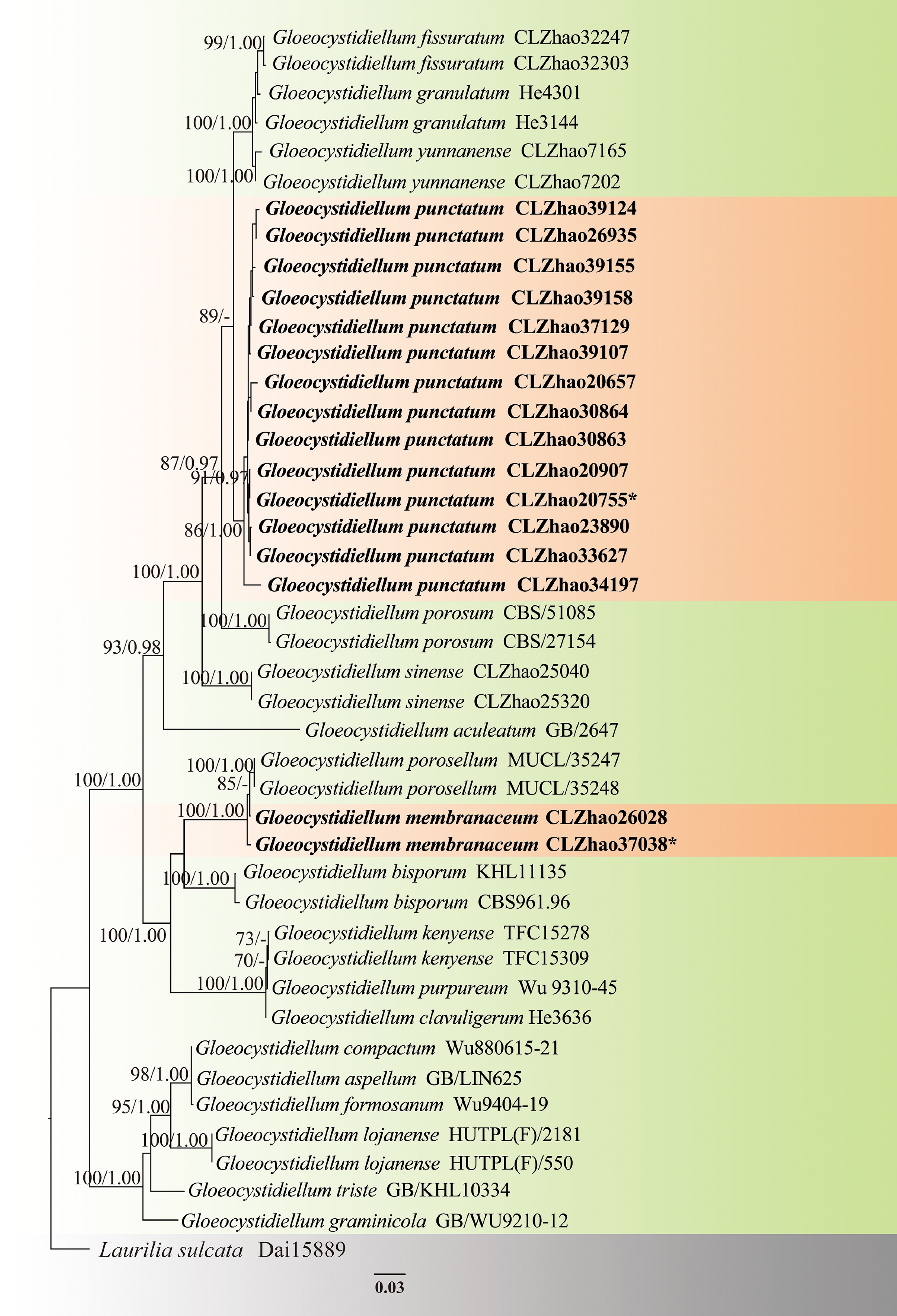 [82] Chen L, Shi ZJ, Wu CH, Zhao CL. 2020. Gloeodontia yunnanensis sp. nov. (Russulales, Basidiomycota) from China, evidenced by morphological characters and phylogenetic analyses. Phytotaxa 432(2):111−118 doi: 10.11646/phytotaxa.432.2.1