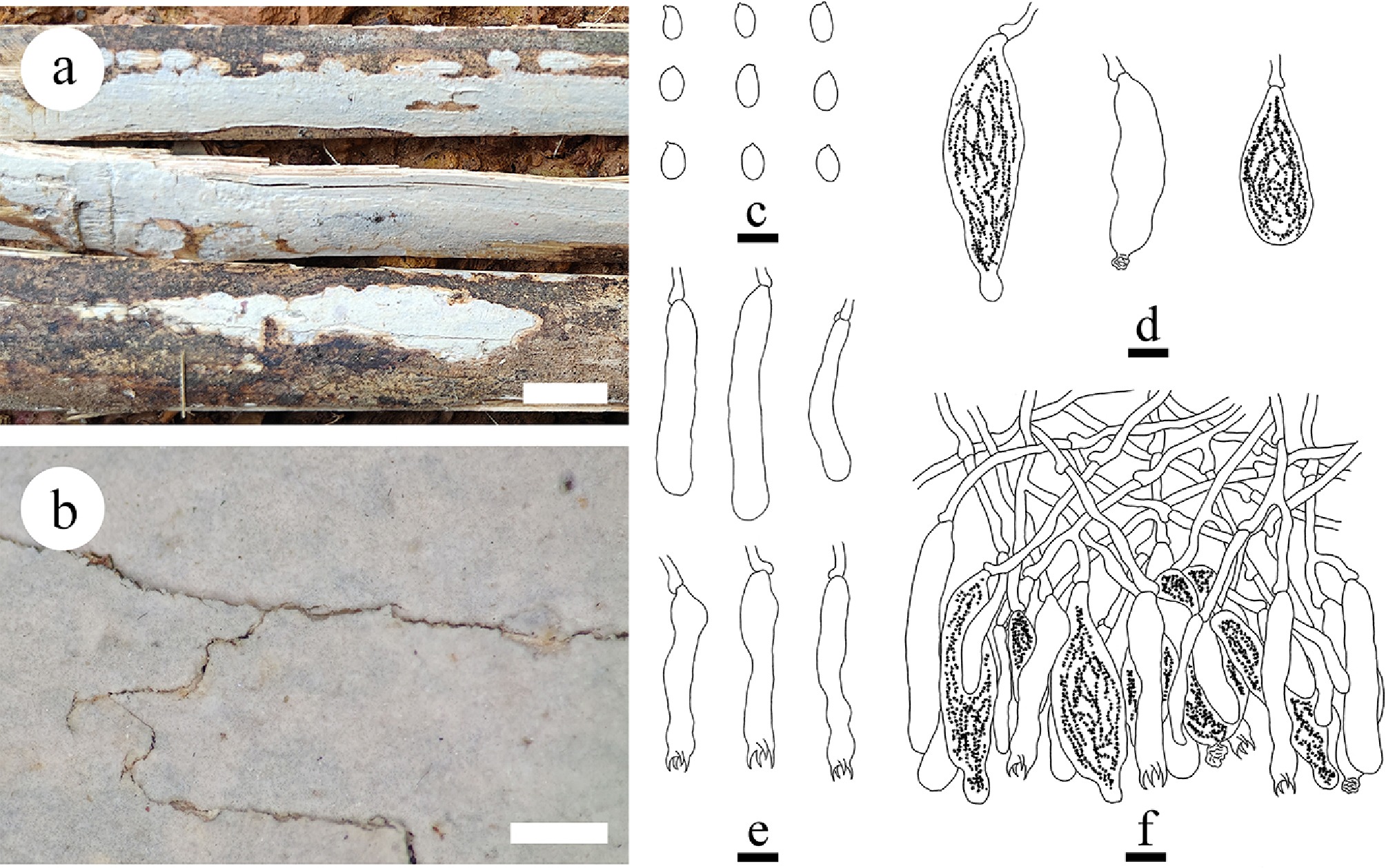 [3] Wang L, Zhu Y, He S, Jabeen S, Zhao C. 2025. Additions to the coriaceous families Peniophoraceae and Stereaceae (Russulales): six novel wood-inhabiting taxa in the genera Conferticium, Gloeocystidiellum, and Peniophora from southwest China. MycoKeys 115:273 doi: 10.3897/mycokeys.115.147044