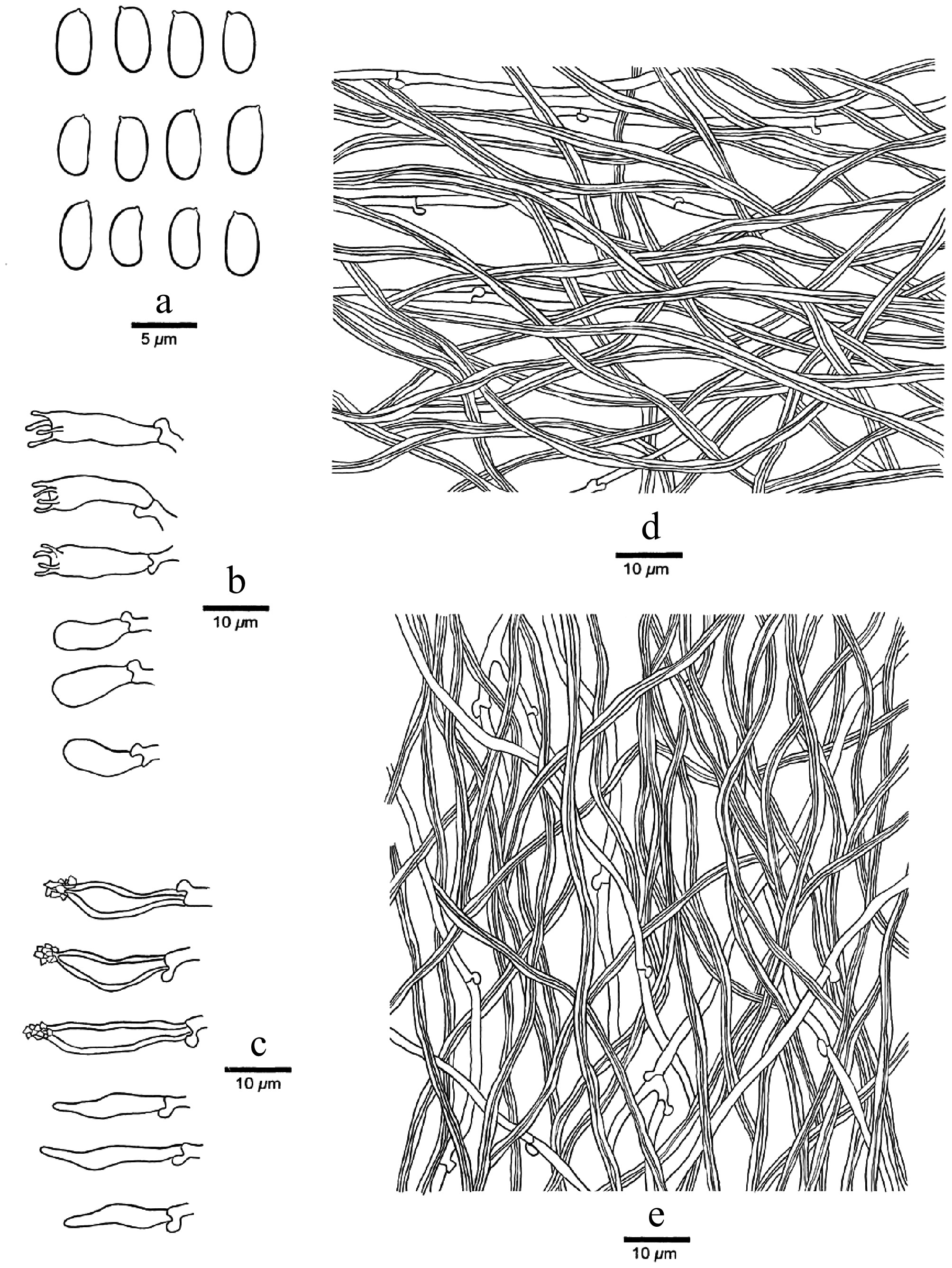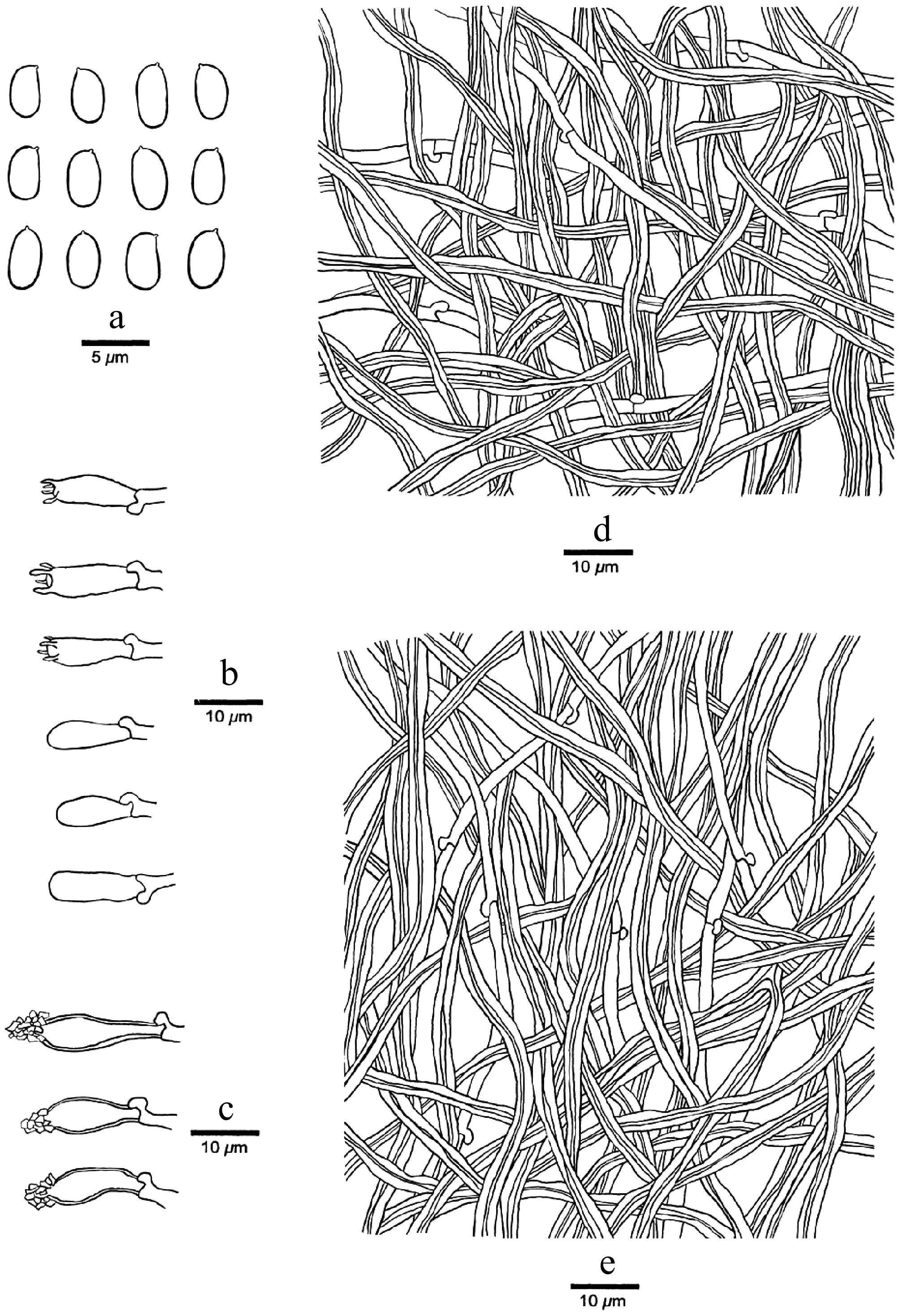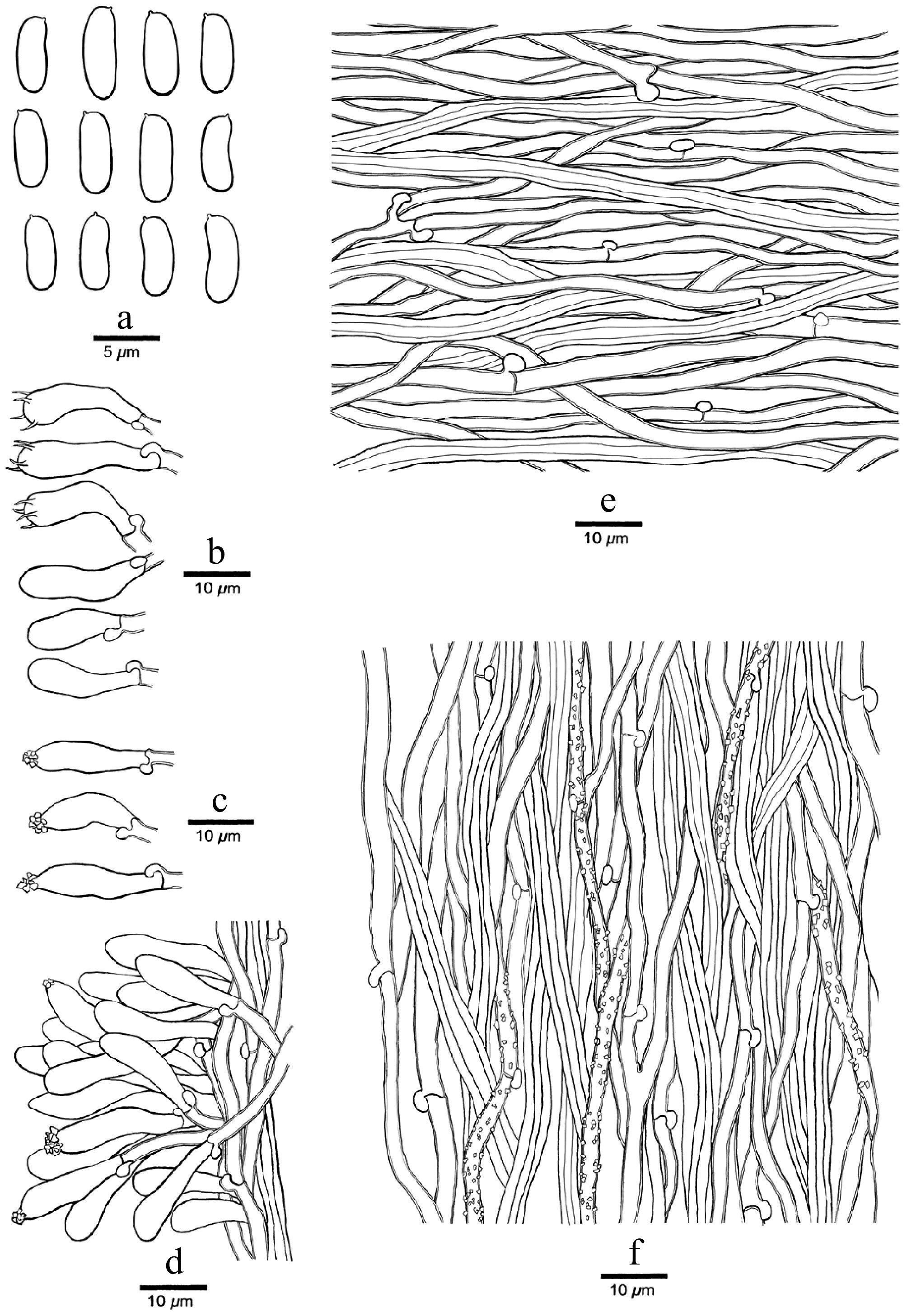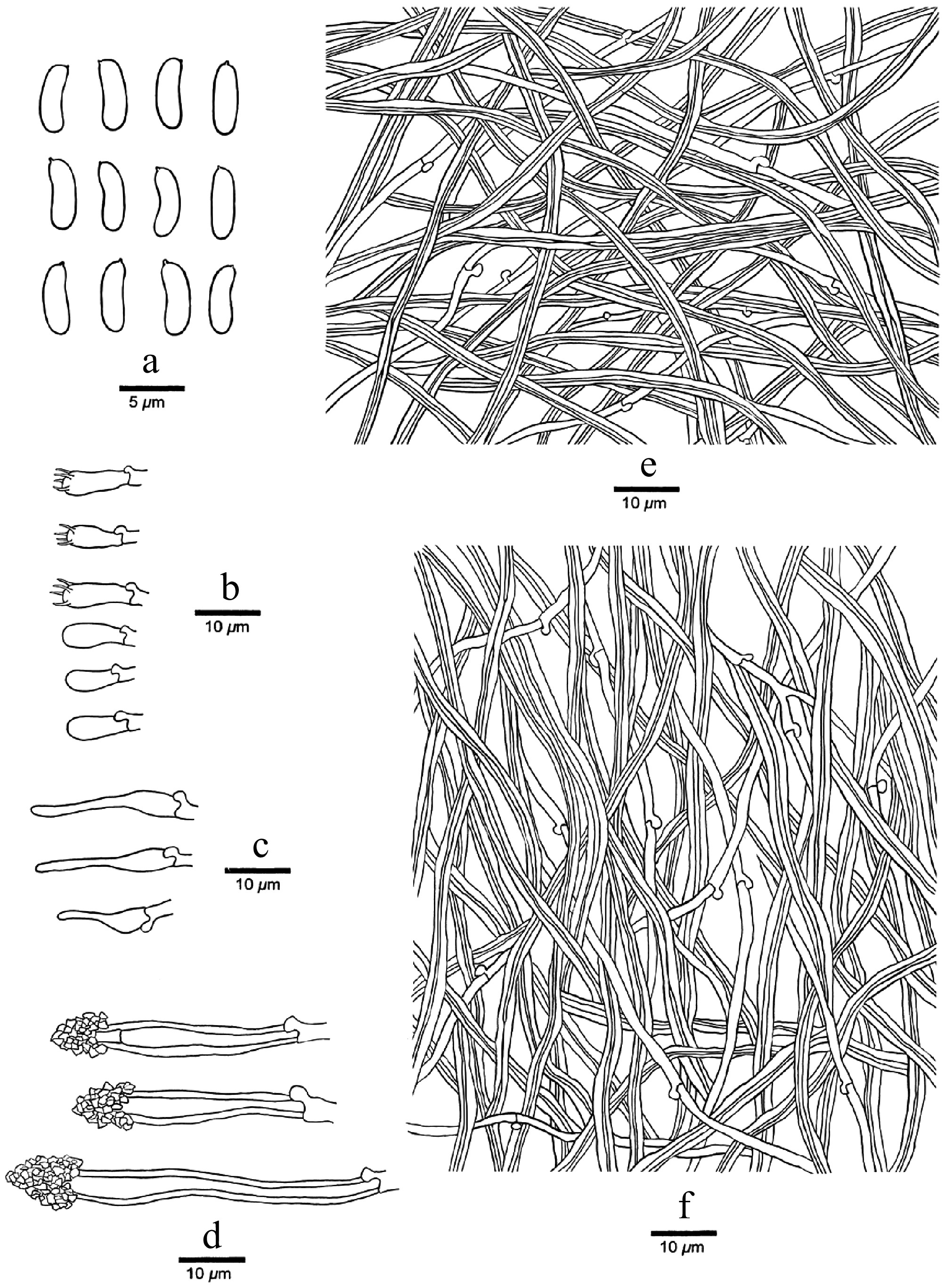 Trichaptum cystidiolatum is so far only found in Costa Rica, but the same sequence, however, is present several times in GenBank as 'Uncultured fungus' (see Discussion). Ryvarden & Johansen[81] show a picture of Trametes versatilis Berk 1842 features (synonym of Trichaptum byssogenum, collected in the USA), where the spores correspond perfectly to our T. cystidiolatum spores. We have not seen its type in Kew, and so we cannot decide now if our T. cystidiolatum is identical with Trametes versatilis or not.