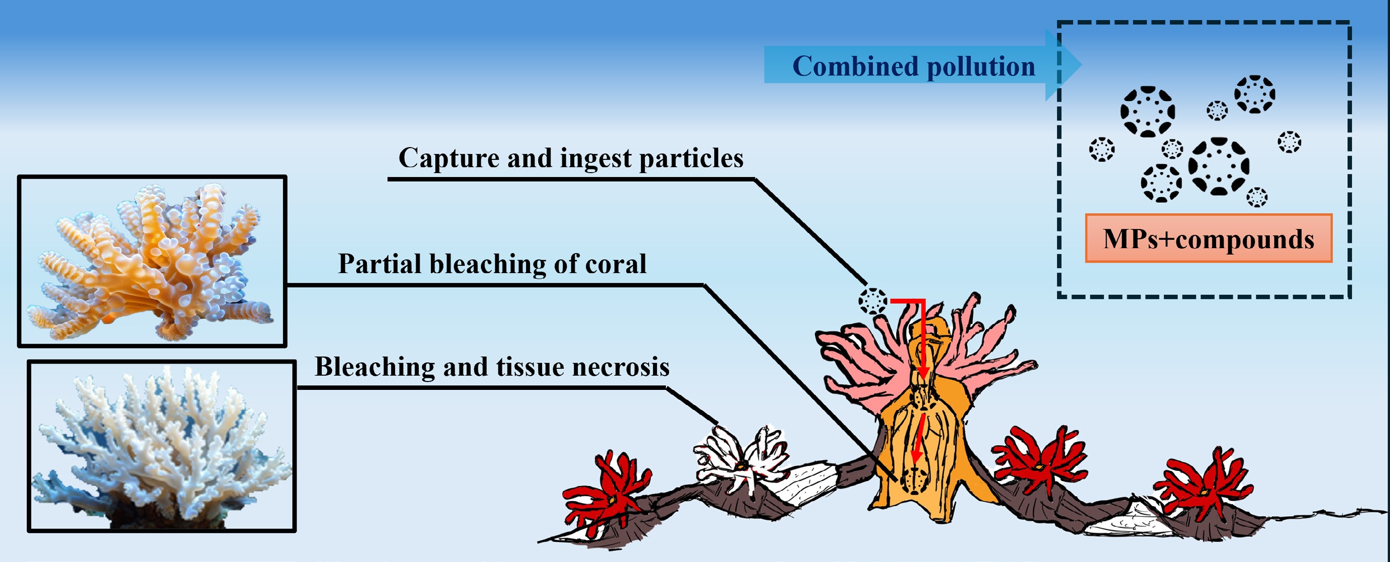 Overall, MPs, through a three-stage mechanism of 'concentration-transportation-synergy', transform originally dispersed low-dose ECs into locally high-dose, multi-stress mixtures, posing a systemic threat to the entire coral-symbiotic algae and microbial community, from the subcellular to the community level.