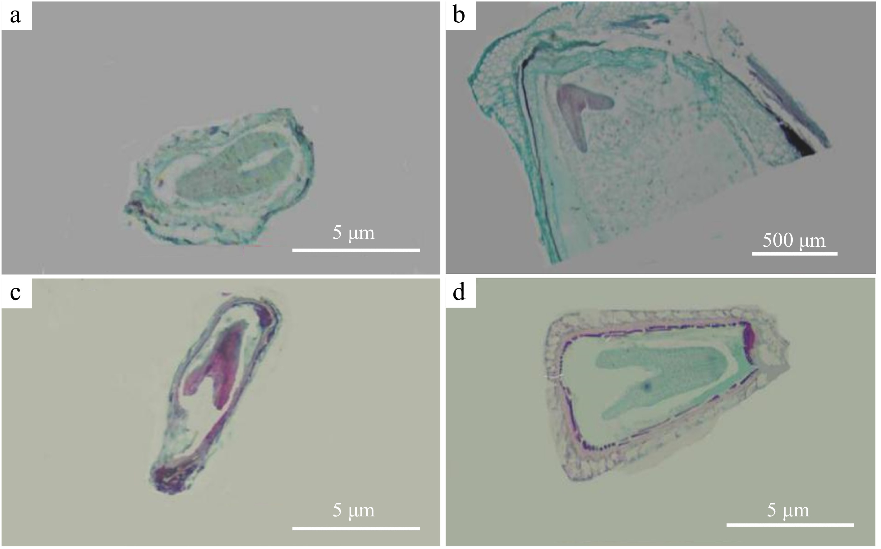 Hybrid embryos were sampled at 2, 3, 4, 5, 10, 15, 20, 25, 30, 40, 50, and 60 d after pollination and fixed in FAA for at least 24 h at 4 °C. Paraffin sections were prepared following the protocol detailed by Wang et al.[35]. The sections were examined using an optical microscope (EX20, SDPTOP).
