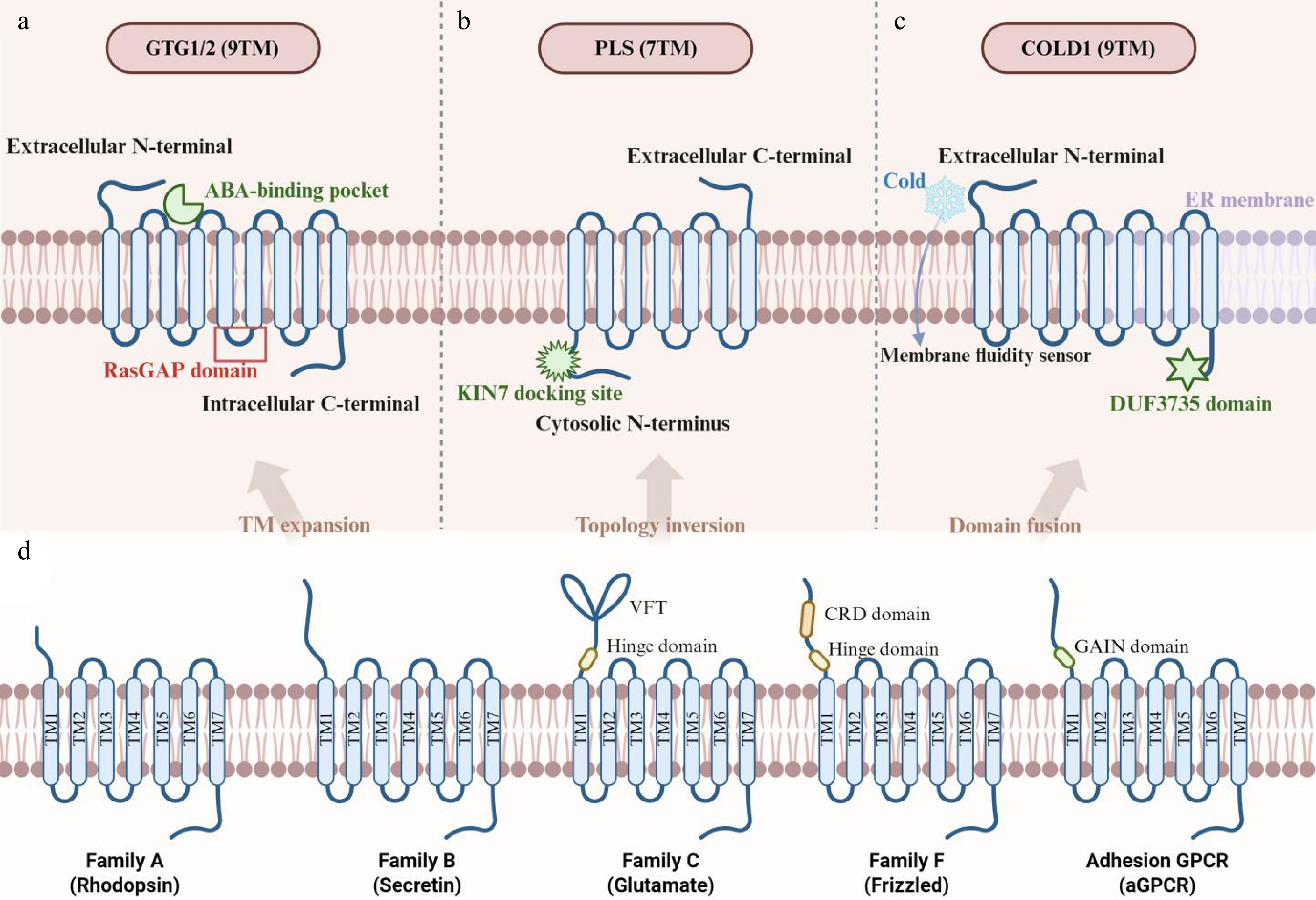 In animals, GPCRs regulate diverse physiological processes through their conserved 7TM structure and functional motifs. However, transmembrane proteins in plants exhibit significant sequence and functional divergence from animal GPCRs (Fig. 1), raising ongoing debate about their classification as true GPCRs.