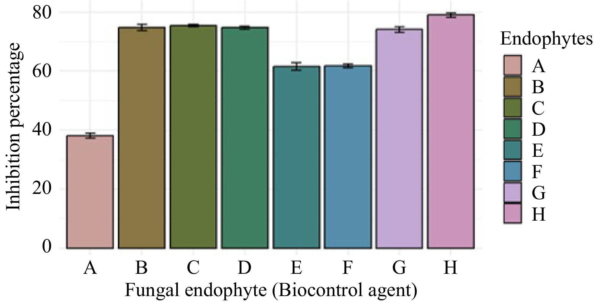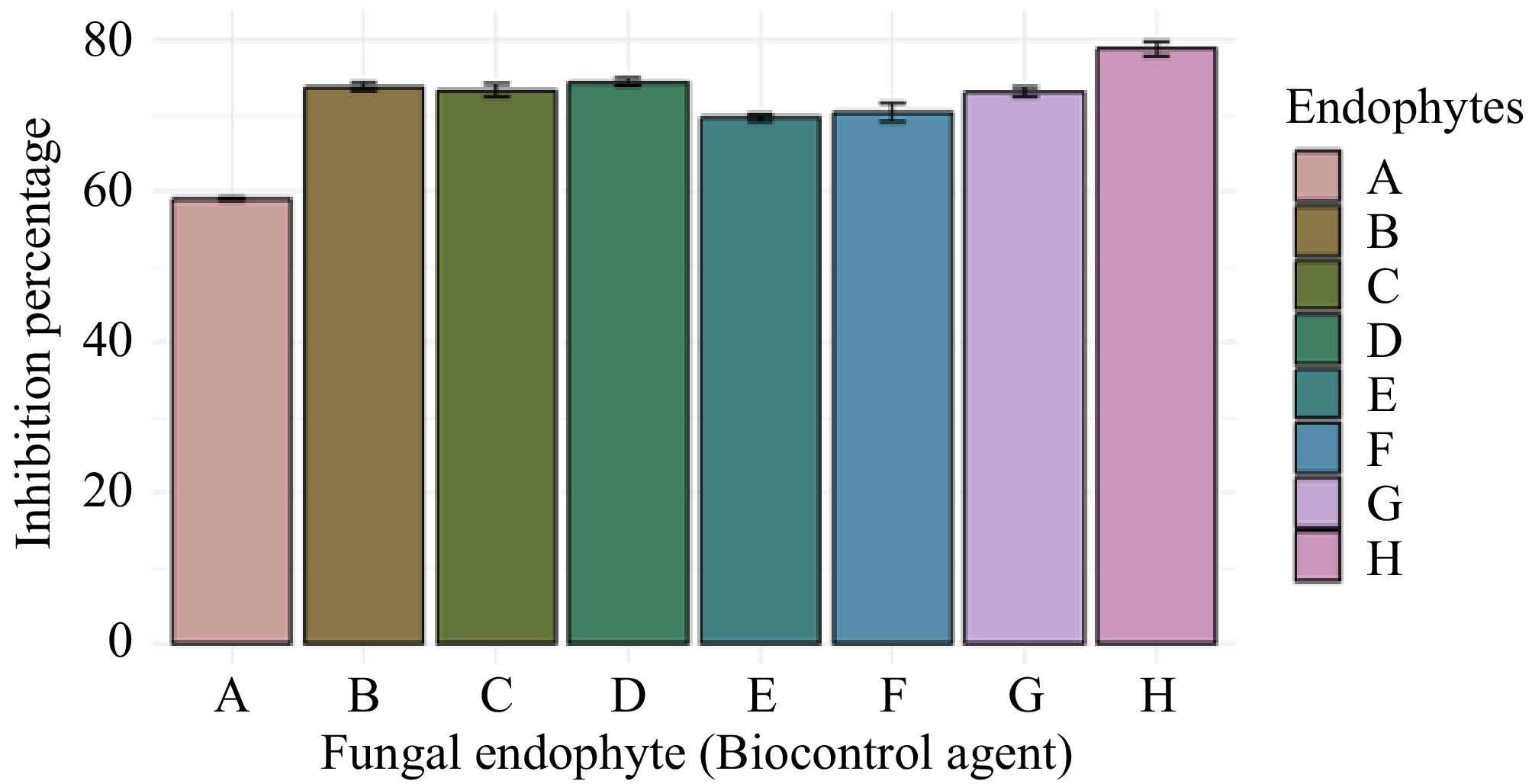 Fungal infections in crops result in significant losses in agricultural production by lowering crop quality and yield[2123]. The standard approaches for controlling the adverse effects of these fungal infections have traditionally included the use of synthetic fungicides and physical treatments[24]. However, the urgent need to decrease the use of hazardous chemicals has prompted research into eco-friendly, sustainable, and long-lasting preventive strategies. Many fungal endophytes can produce bioactive substances with antifungal properties[2528]. Therefore, these fungal endophytes have drawn a lot of attention in the search for sustainable biocontrol agents against phytopathogenic fungi[2931].
