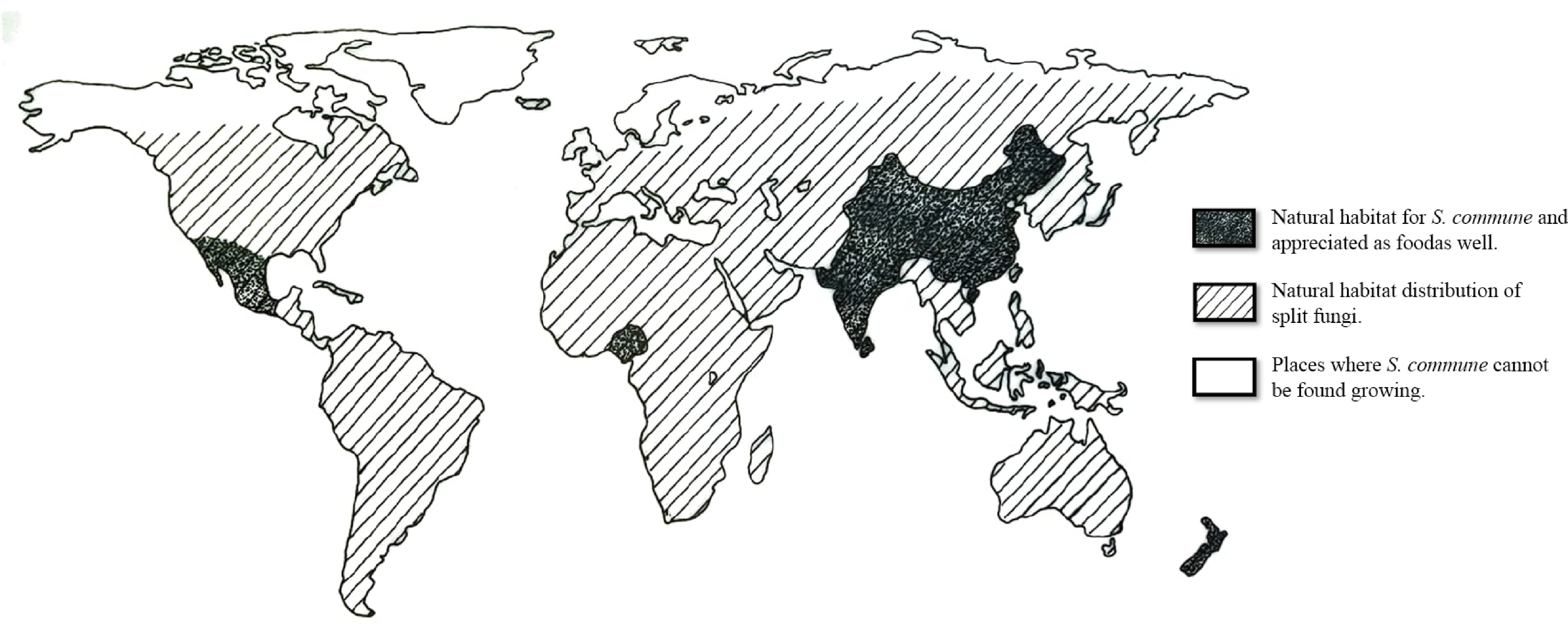An experimental survey on the natural distribution and culinary engrossment of split fungi was conducted by Utrecht University in collaboration with NWO (Dutch Research Council—Earth and Life Science, Humanities, The Hague), ZonMW (Medical Research Council, The Hague), MU Artspace (Eindhoven), and Waag Society (Amsterdam). According to their report, a worldwide distributional map has been prepared (Fig. 4).
