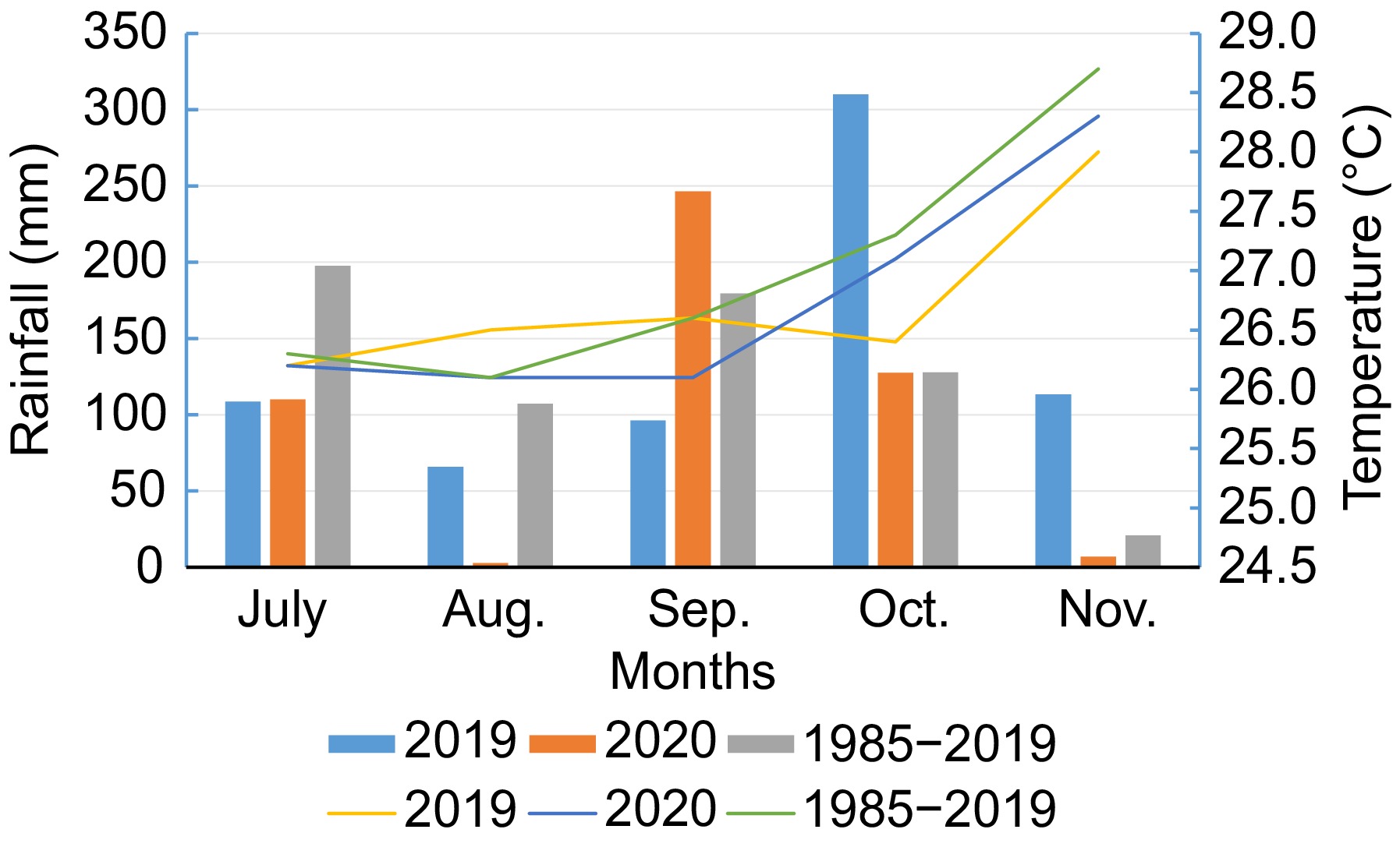 Table 3.  Some weather parameters during the late cropping season (July–November) in 2019 and 2020.