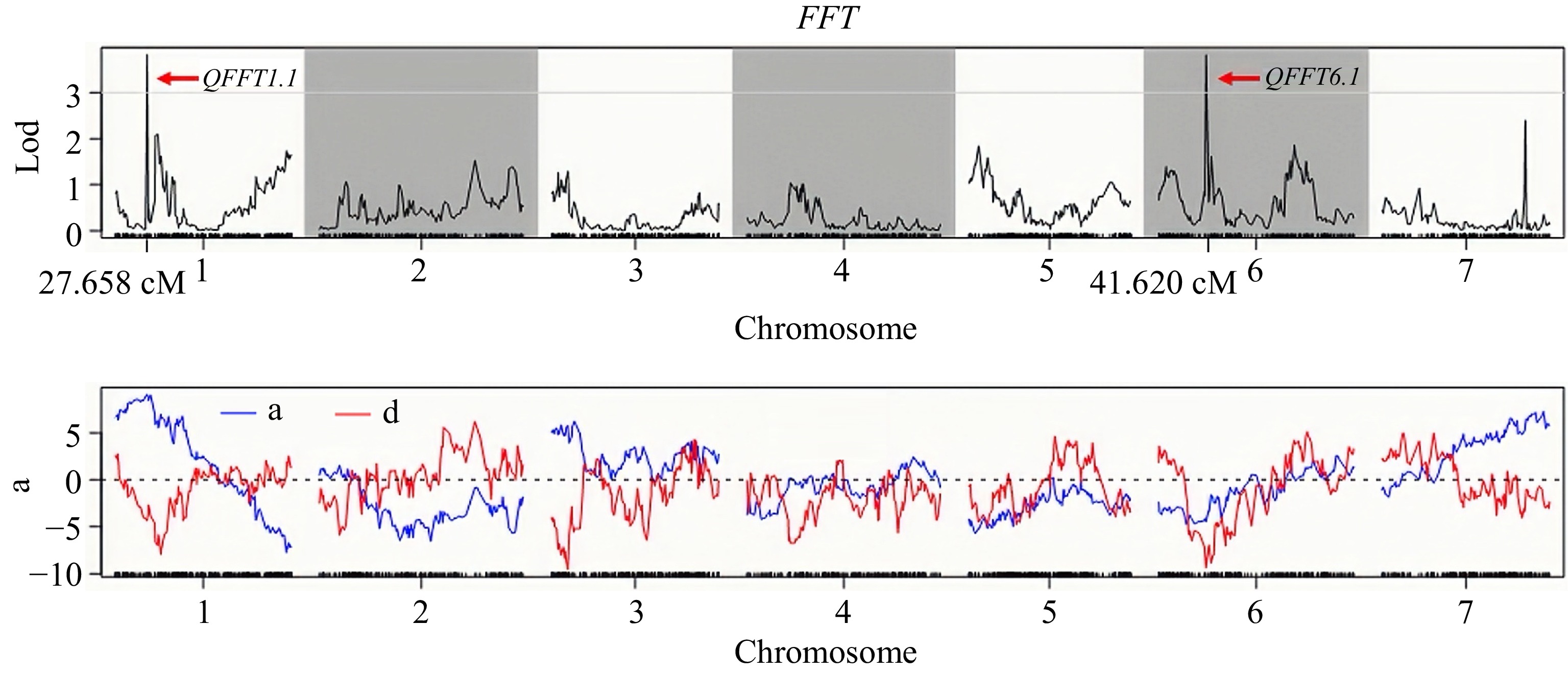 The LOD value distribution of QTL loci for the FFT in the F2 population.