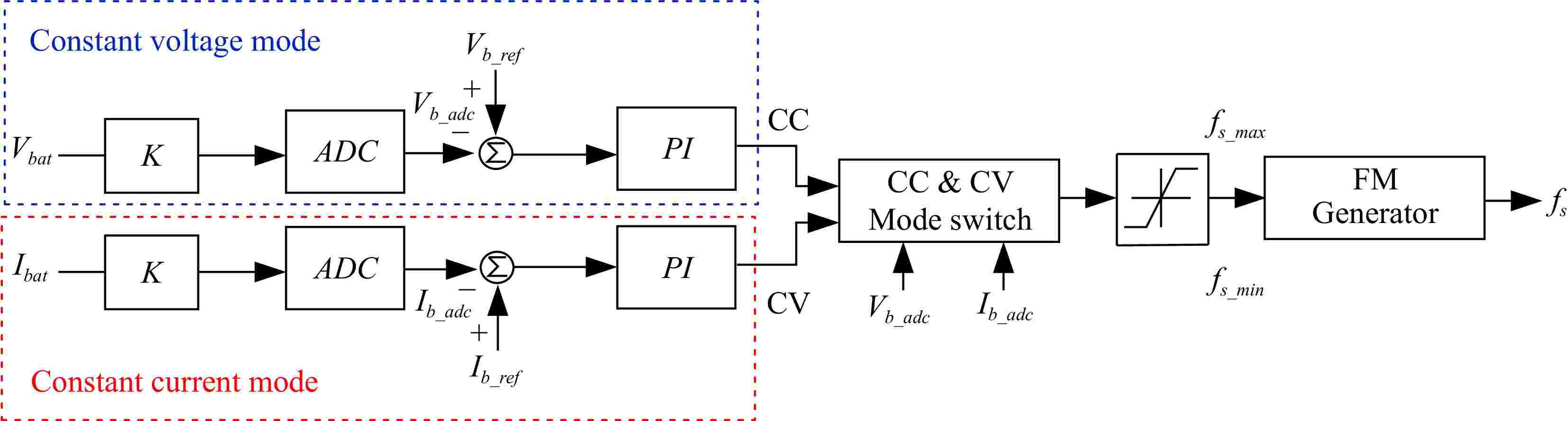 By detecting the battery charging voltage and current signal at the same time, the PI compensating circuit will determine CC or CV mode by programming algorithm, and finally generate a frequency-adjustable pulse signal through the FM waveform generator.