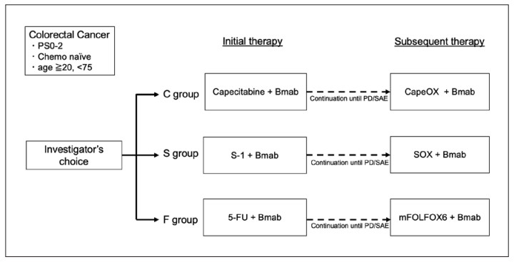 Toshifumi Yamaguchi, Motoki Yoshida, Hisato Kawakami, Takayuki Kii, Hiroko Hasegawa, Takahiro Miyamoto, Tetsuji Terazawa, Fukutaro Shimamoto, Masayoshi Yasui, Daisuke Sakai, Toshio Shimokawa, Yukinori Kurokawa, Masahiro Goto, Taroh Satoh. 2022. Sequential Treatment Strategy Using Fluoropyrimidine plus Bevacizumab Followed by Oxaliplatin for Metastatic Colorectal Cancer: A Phase Ⅱ Study (OGSG 1107). Gastrointestinal Tumors. 9: doi: 10.1159/000522610