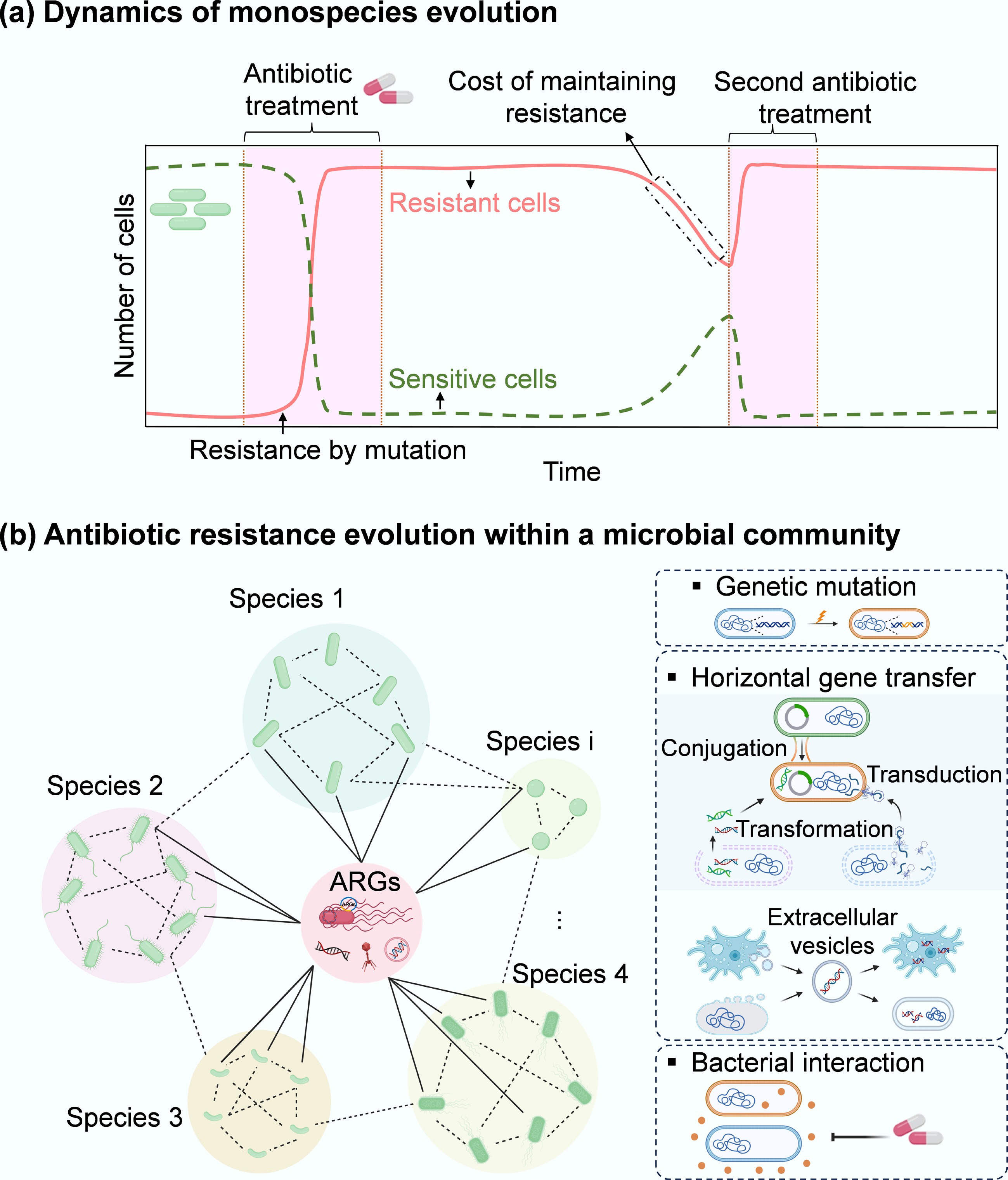 • The intensive use of antibiotics over the decades has accelerated the evolution and spread of antibiotic resistance, which has emerged as a global threat to public health, and more broadly a One Health problem[1]. In 2019, an estimated 4.95 million fatalities were associated with bacterial antimicrobial resistance (AMR)[2]. In the following 25 years, AMR-associated death will be 39 million, if left unaddressed[3]. Effective drug treatment relies on a better understanding of the ecological and evolutionary dynamics of bacterial AMR, thus enabling us to minimize the global threat of AMR.
