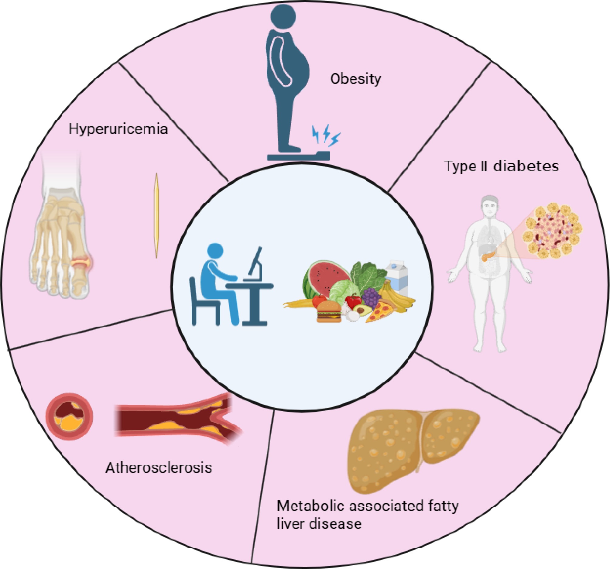 The most prevalent chronic metabolic diseases (CMDs), including Type 2 diabetes mellitus (T2DM), obesity, metabolic dysfunction-associated steatotic liver disease (MASLD), hyperuricemia, and cardiovascular diseases, are nutrition- and exercise-related disorders that remain clinically challenging to cure effectively (Fig. 1)[1]. As the pathogenesis of various CMDs shares common etiological factors related to dietary patterns and physical inactivity, significant interconnections exist among these conditions. T2DM primarily arises from insulin resistance caused by dysregulation of glucose and lipid metabolism, accompanied by characteristic manifestations such as hyperinsulinemia, dyslipidemia, hyperuricemia, and MASLD[2]. Similarly, obesity develops through surplus energy and excessive lipid accumulation resulting from imbalanced energy intake and expenditure[3]. Epidemiological data indicate that since the 21st century, mortality and disability rates associated with common CMDs have surged dramatically, with disease burdens showing continuous escalation[4]. These findings underscore the critical need for coordinated global health initiatives to counteract the rising trends of these debilitating disorders and improve population health outcomes worldwide.