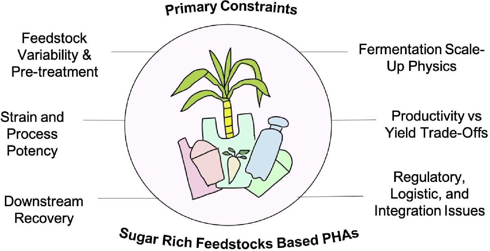 Primary bottlenecks in PHAs production from sugar rich feedstocks.