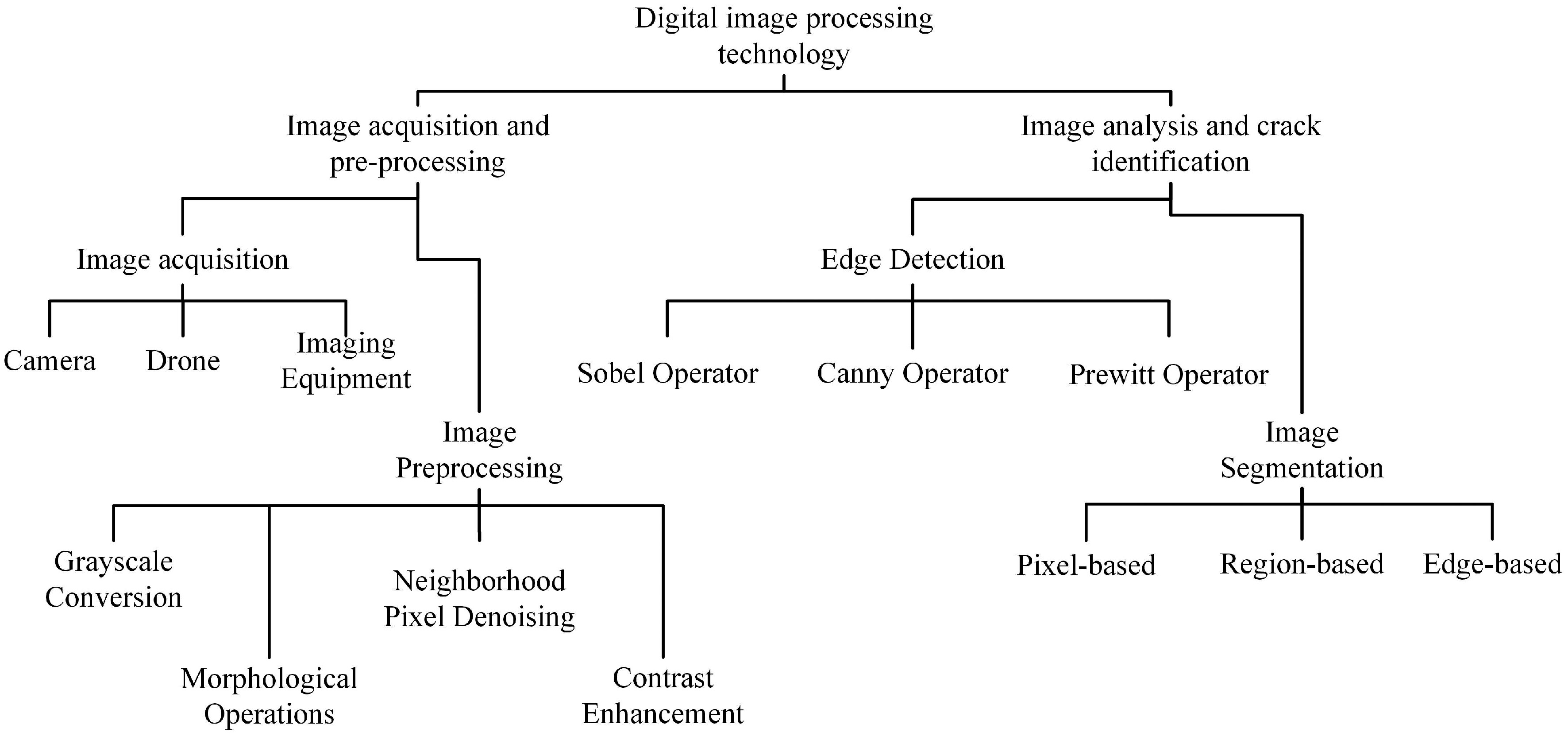 Digital image processing-based technologies are widely used in preliminary crack detection due to their relative maturity and lower implementation costs. These technologies perform well in identifying cracks under simple scenarios and standard conditions but are often sensitive to complex backgrounds and varying lighting conditions, with room for improvement in terms of automation and precision. On the other hand, machine learning-based technologies, especially those based on deep learning, have shown tremendous potential in handling complex images and automating the learning of crack features. Although these technologies require substantial computational resources and data, they offer significant advantages in accuracy and adaptability, particularly in environments that require processing large-scale data and diverse road conditions.