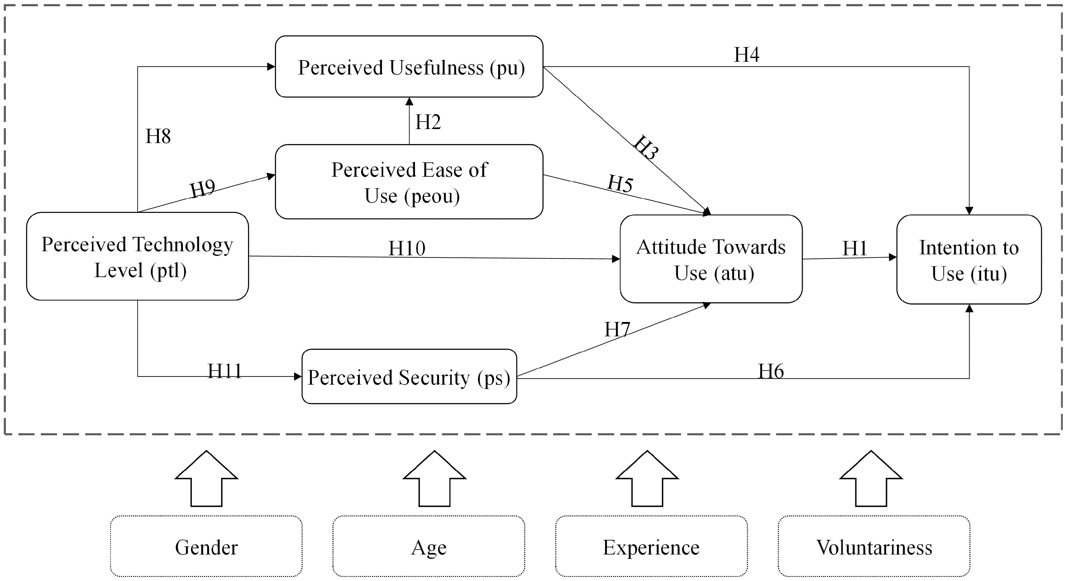 (1) Perceived usefulness, attitude towards use, and perceived safety positively influence intention to use.