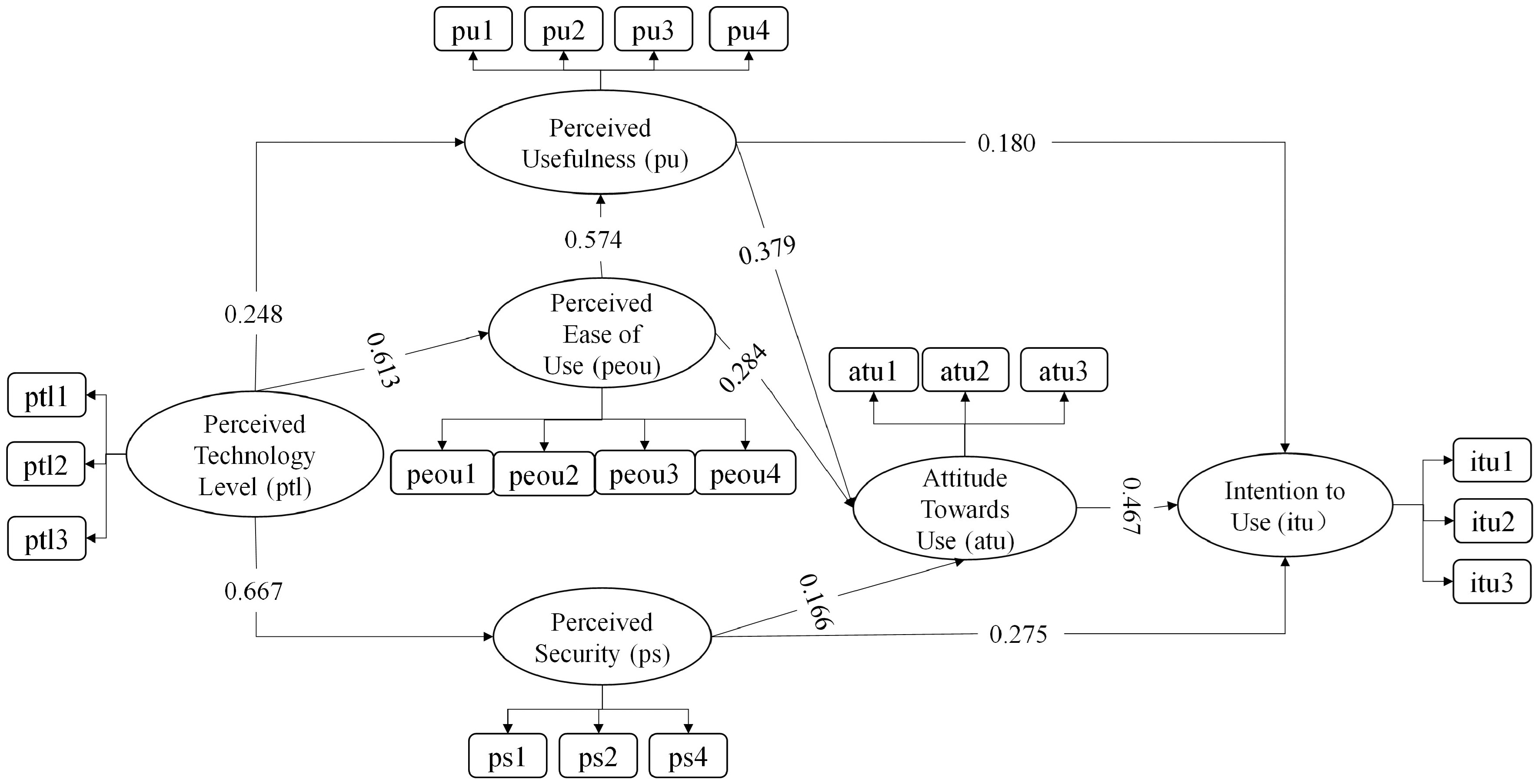 (3) Perceived technology level has a positive impact on perceived usefulness, perceived ease of use, and perceived safety.
