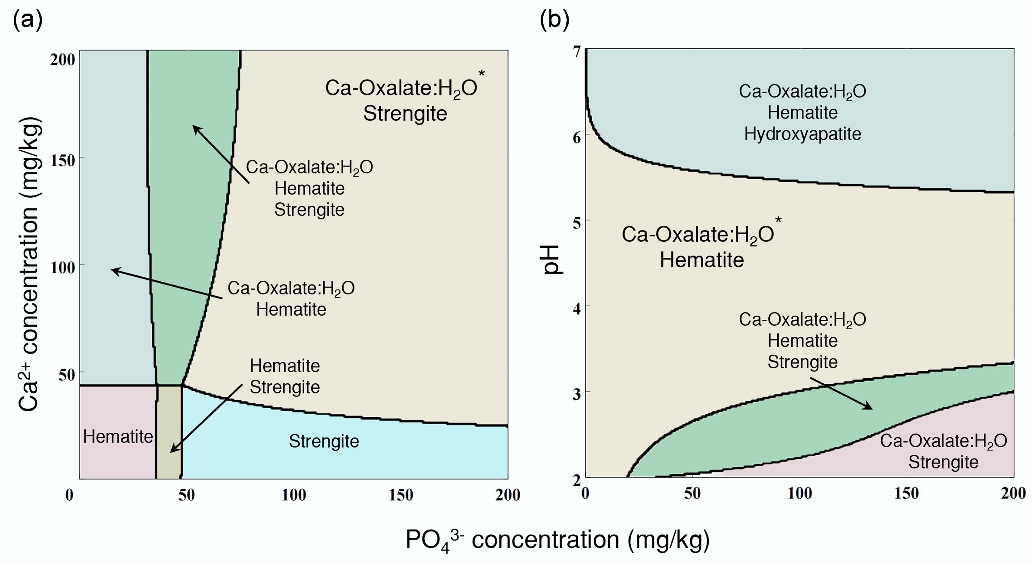 • The Geochemist's® Workbench (GWB Version 12, USA) was applied to simulate the mineralization of Fe and the formation of CaC2O4[45]. The concentrations of HPO42− and PO43− were based on ICP-OES data.