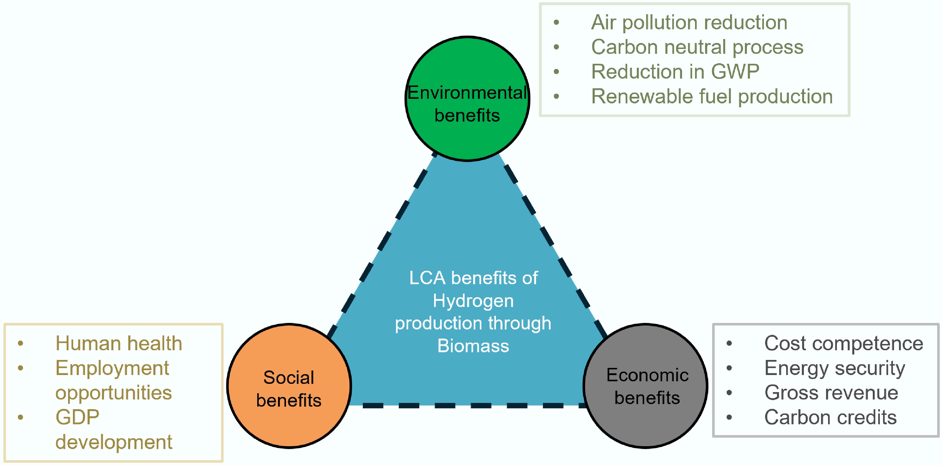 Similarly, the production of methane through the thermochemical conversion of biomass presents a promising pathway for renewable energy. TEA analyses emphasize the importance of selecting appropriate feedstocks and optimizing process designs to enhance economic feasibility. The environmental benefits, as illustrated by LCA, include reduced GHG emissions and the potential for sustainable feedstock management, especially when utilizing waste biomass. Both TEA and LCA underscore the necessity for innovation in process technology, efficient resource utilization, and the development of supportive policy frameworks to realize the full potential of bio-based syngas, hydrogen, and methane as pivotal components of a sustainable energy future.