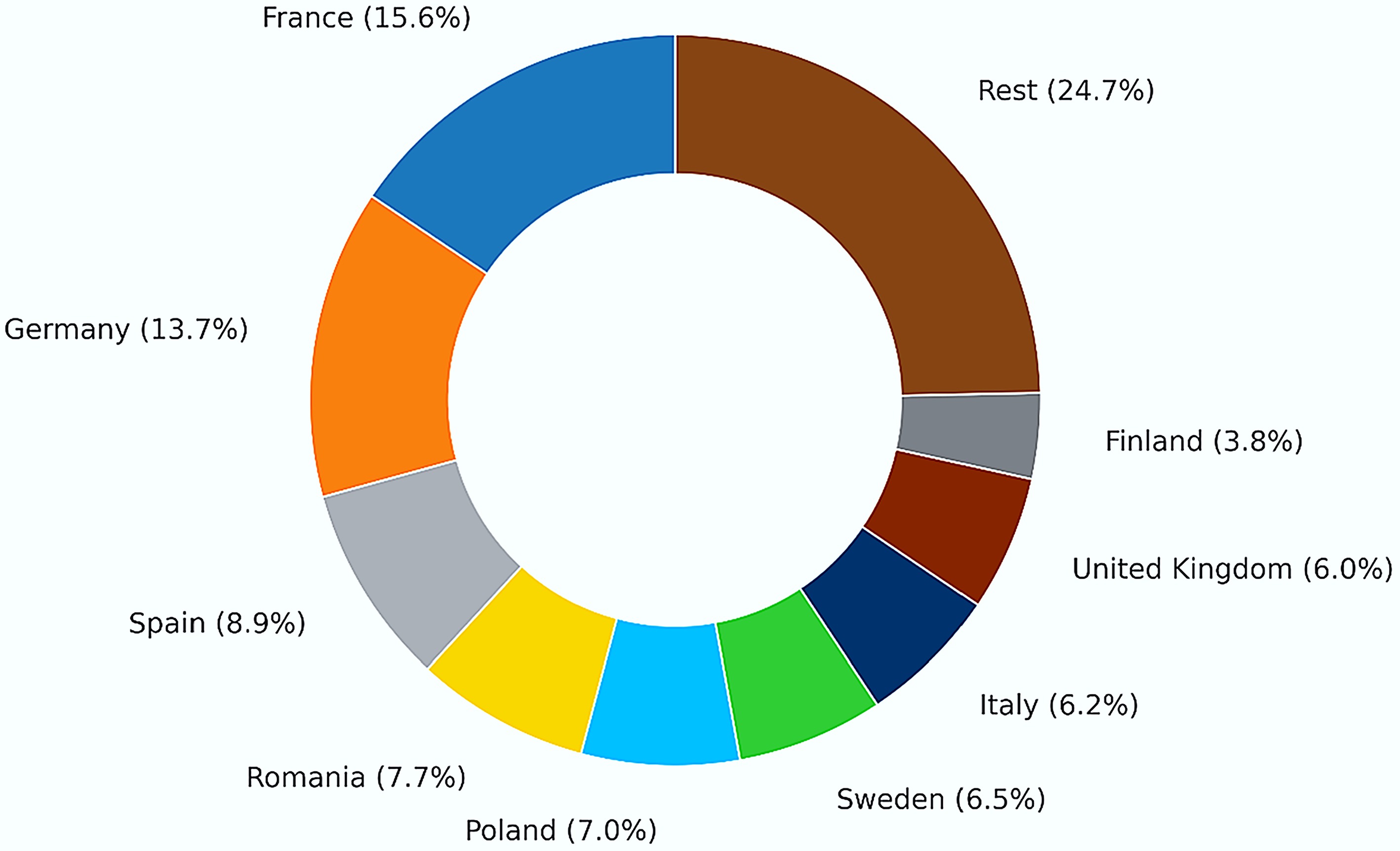 By 2050, several European countries, including Germany, France, Spain, Poland, and Italy, are expected to contribute more than 50% of the total biomethane production capacity, as depicted in Fig. 9. The production potential in these countries is largely influenced by the availability of biomass resources, with larger land areas typically supporting higher methane yields[145].