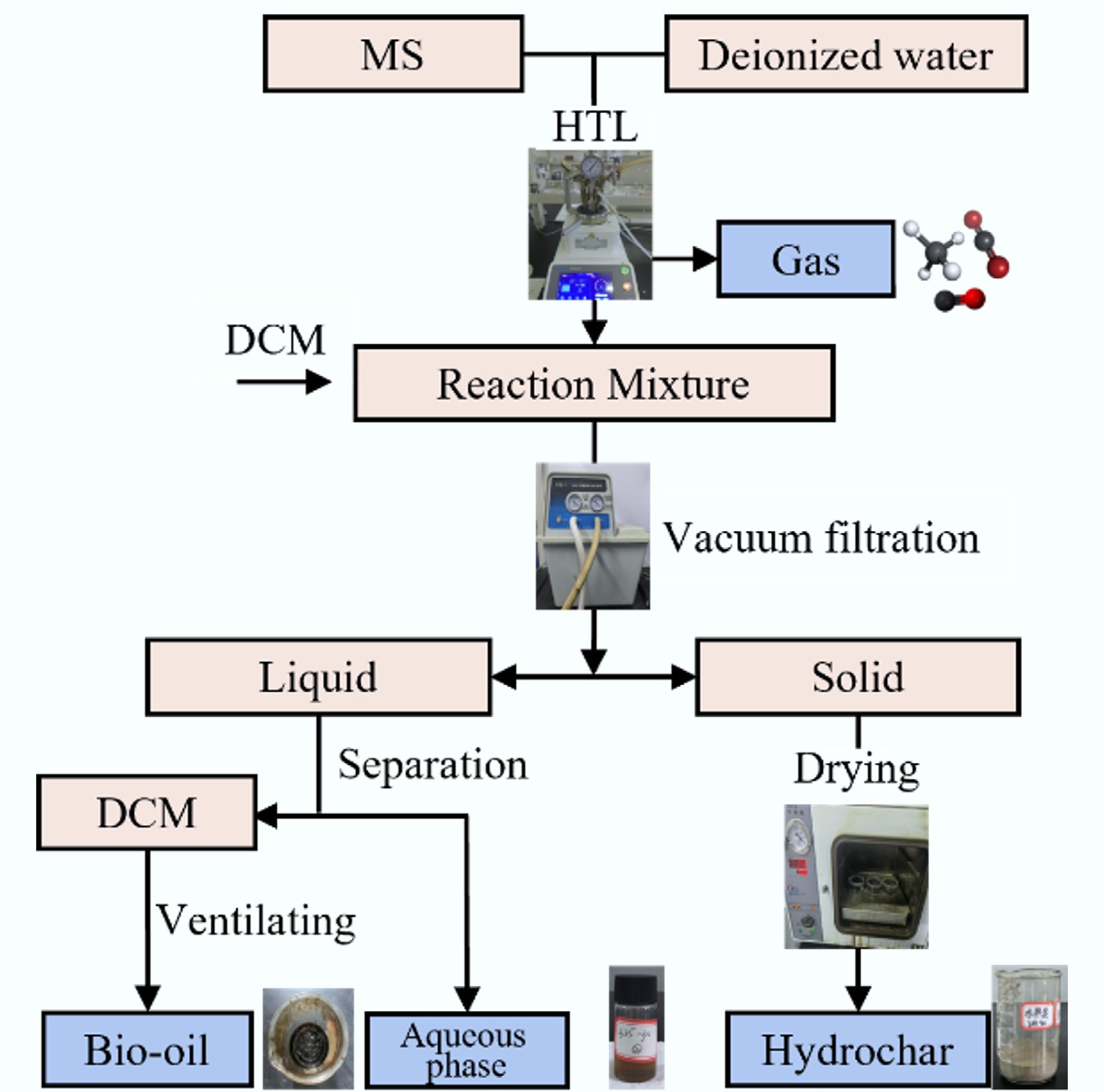 Primary digested MS was used as feedstock, which was collected from Xi'an Dengjiacun Wastewater Treatment Plant in Shaanxi Province. Its basic properties were listed in Table 1. The original wet MS was dried in an oven at 105 °C for 24 h, and subsequently crushed and sieved to 80 mesh. Dichloromethane (analytical pure) was employed for the extraction of oil-phase products, and ethanol (analytical pure) was applied to clean residual oil stains on the reaction apparatus and glassware surfaces. The consumables for TN tests (LH-HTL and LH-YNT) were purchased from Beijing Lian-hua Tech. Co., Ltd for measuring the total nitrogen concentration in the aqueous phase product.