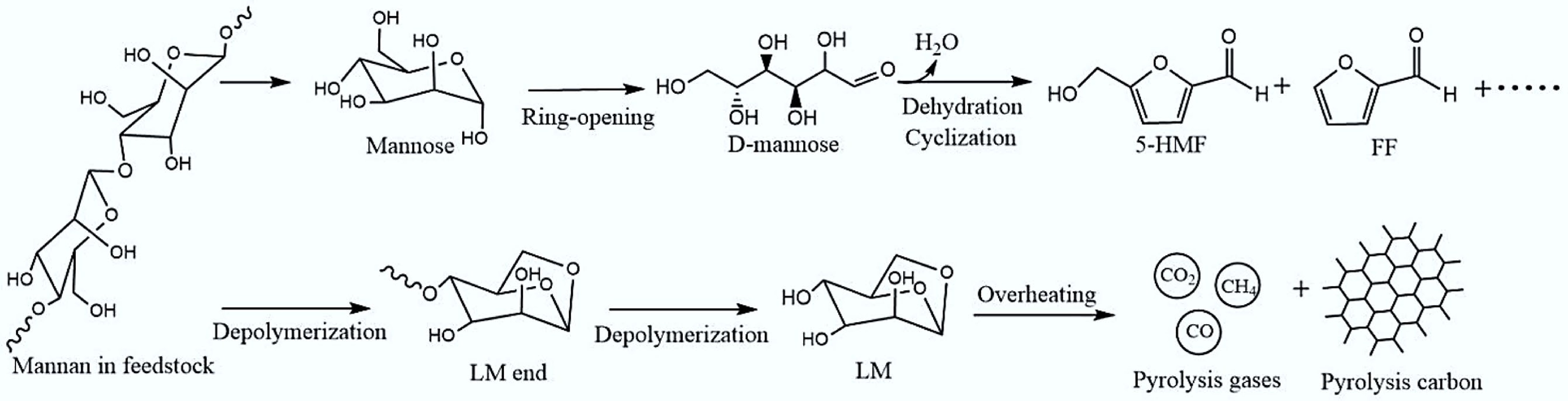 Discussion on the pyrolysis mechanism of the mannan-rich feedstocks
