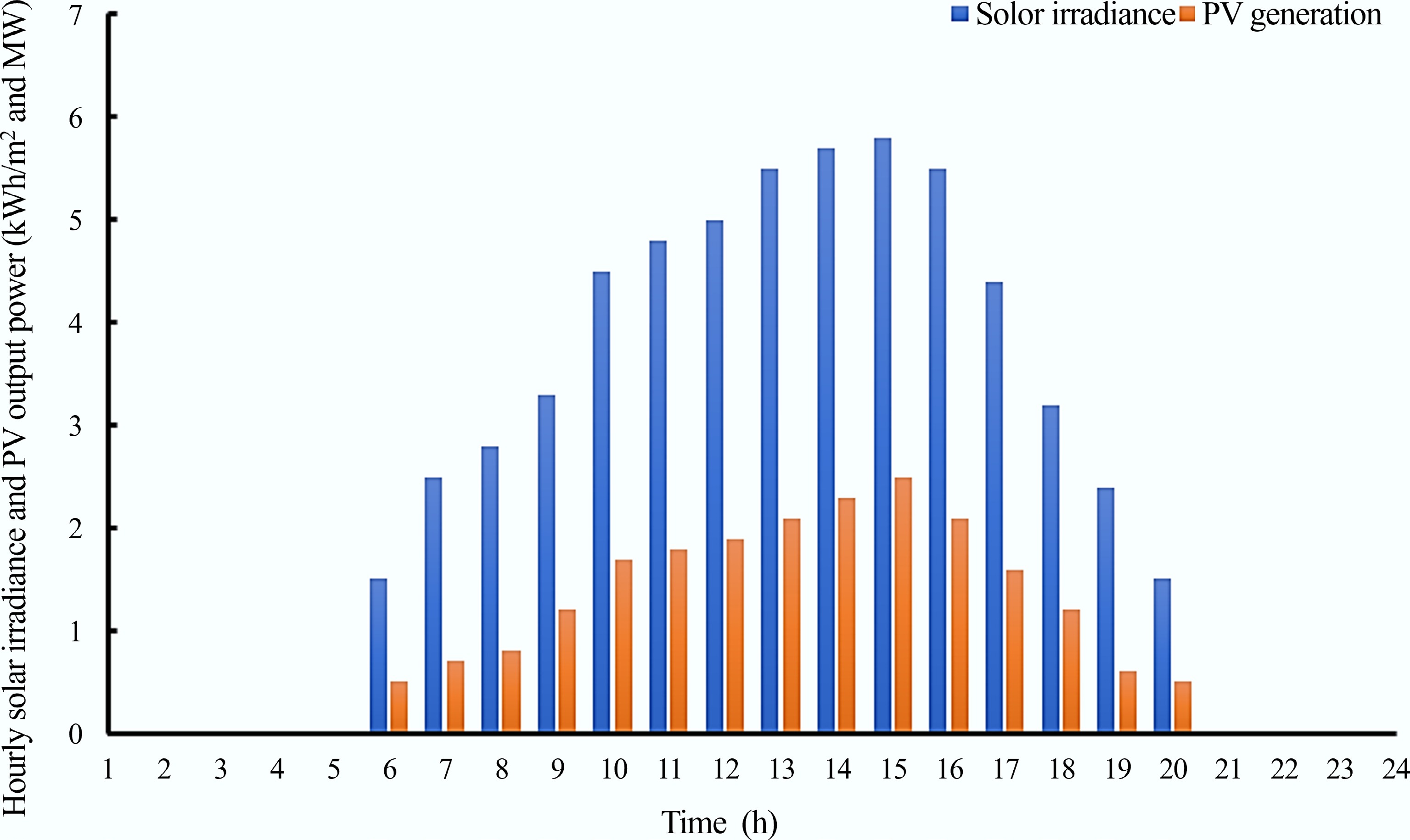 The solar irradiance and the energy produced by the PV over a 24-h period are shown in Fig. 5. From the figure, it is evident that the PV is only able to generate power during the daytime, and as a result, it cannot be used alone to meet the microgrid's demand, especially during nighttime, or periods of low solar profile, without storage due to its intermittent nature.