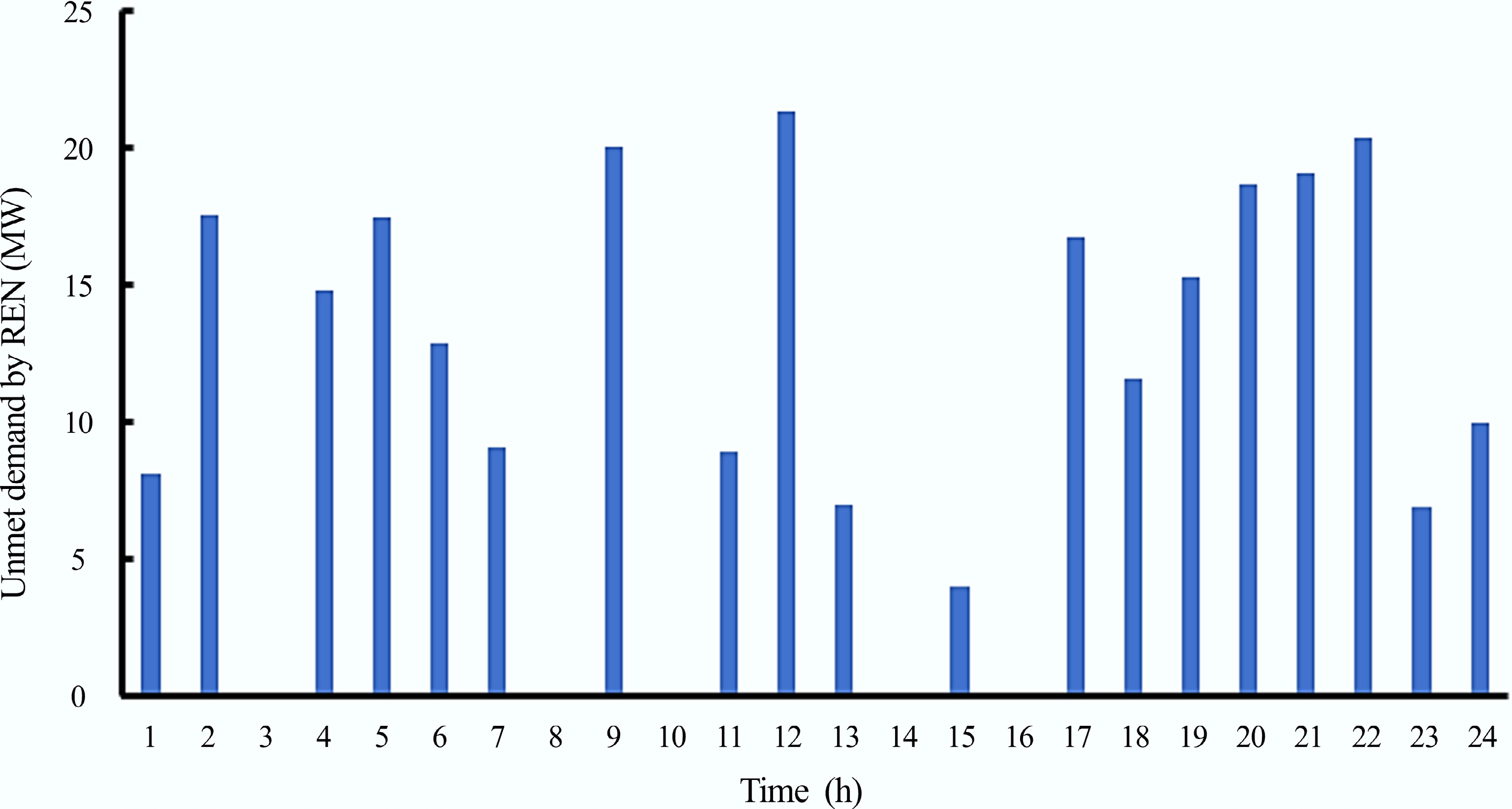 Equation (21) enforces rule (vi), preventing load curtailment at any point in time when the generated power of the DERs is sufficient to meet the microgrid's demand.