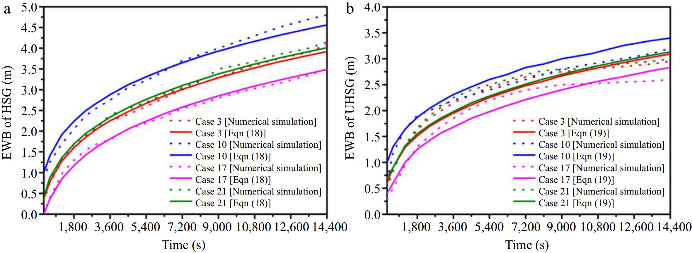 (a) Verification of the EWB calculation model under HSG conditions. (b) Verification of the EWB calculation model under UHSG conditions[17].