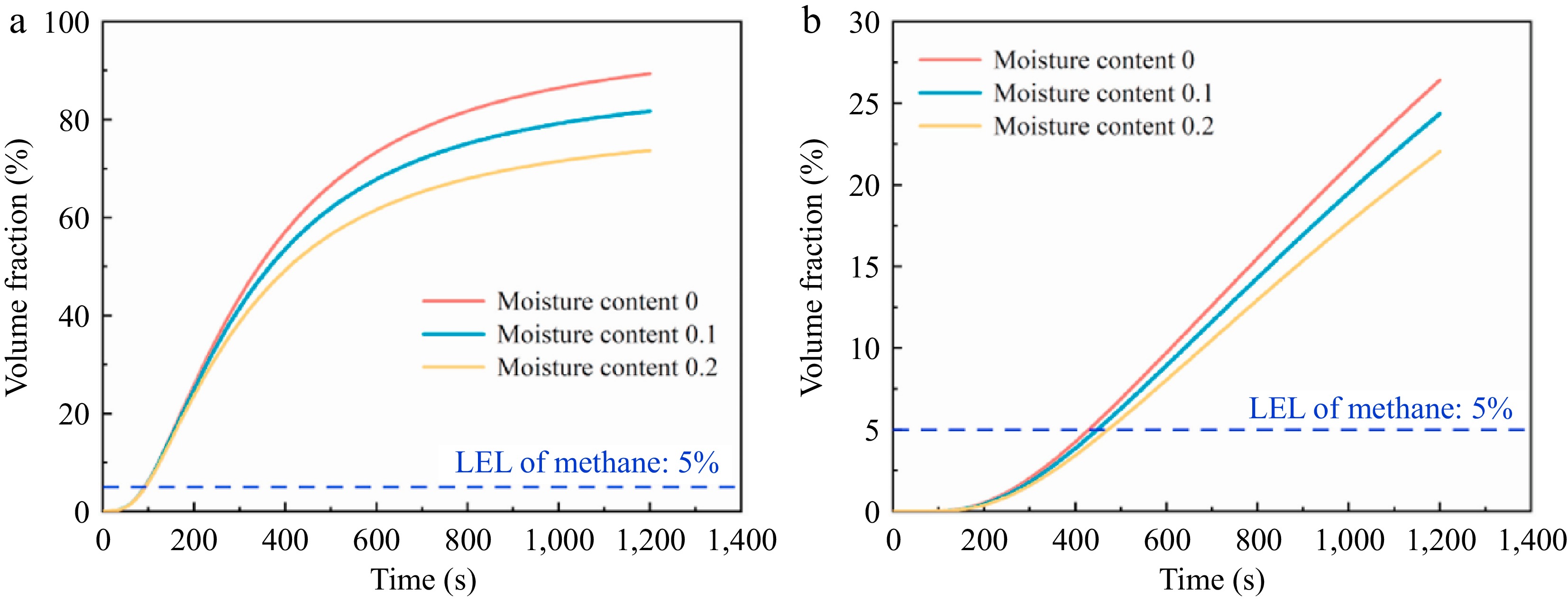 Effect of soil moisture content on gas volume fraction. (a) and (b) present data from different monitoring points[52].