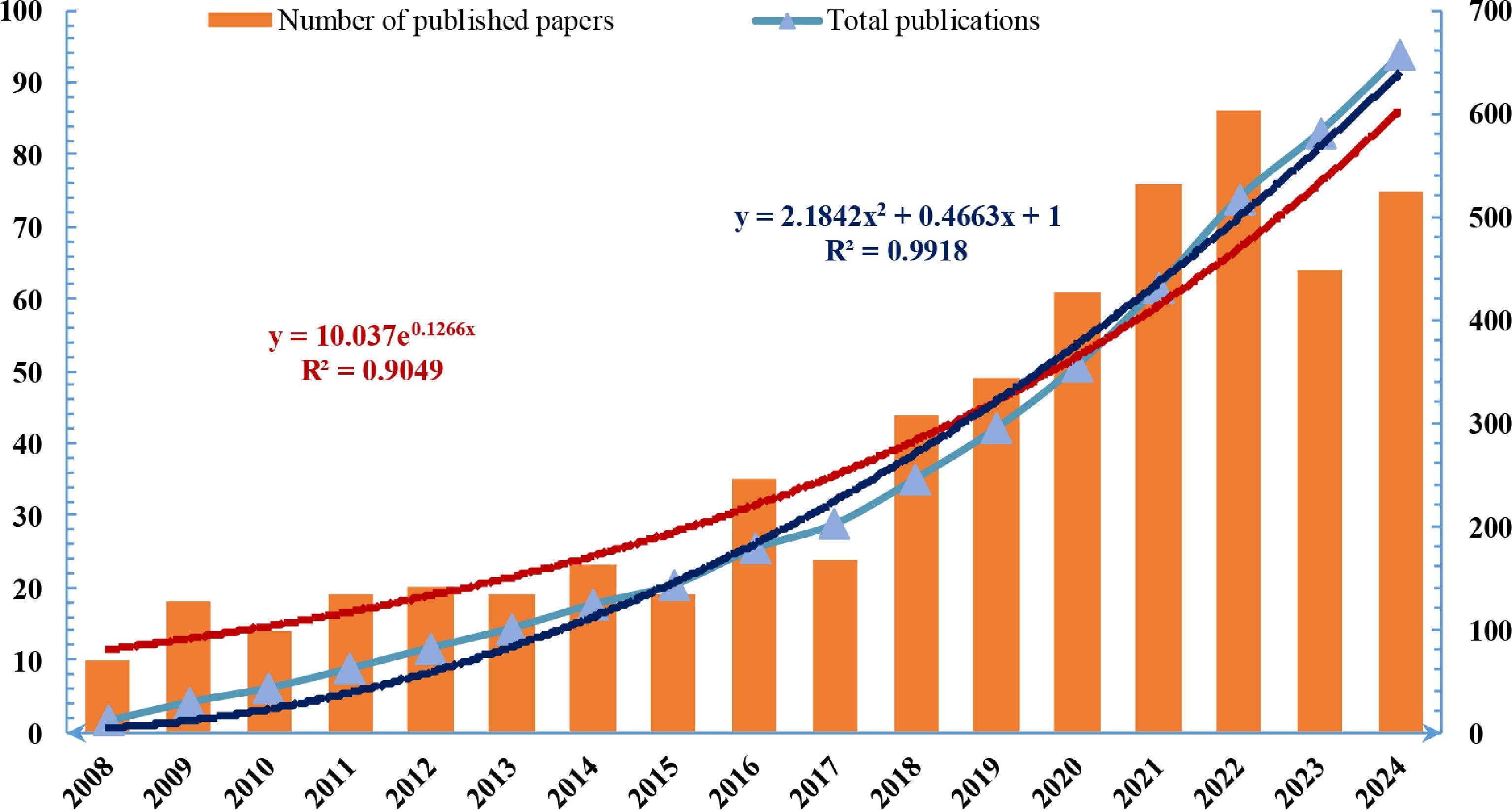 By selecting the literature from 2013 to 2024 for analysis, the latest progress and development trends in subway fire research could be effectively captured. This period not only covered the rapid innovation of subway fire prevention and control technology, but also reflected the impact of changes in urbanization, subway construction, and emergency management policies. After 2013, the number of research papers published in the field of subway fire safety increased significantly. This resulted from the ongoing urbanization and the global expansion of subway systems over the past decade, leading to increased research on subway safety. Between 2008 and 2012, only 12.3% of the total papers published from 2008 to 2024 were released, with limited methodological diversity. Since most of the highly cited papers were published after 2013, more relevant and significant research was included. This period saw a large number of high-quality documents, providing stable and representative data for bibliometric analysis.