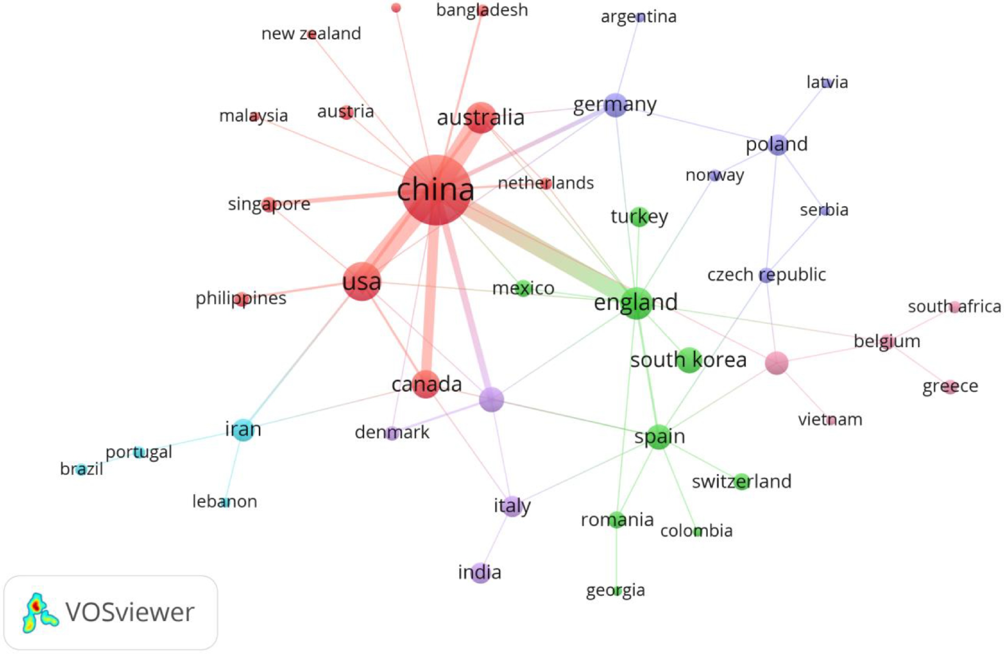 • The journal co-citation analysis method is a quantitative study technique in bibliometrics and scientometrics. Scholars both domestically and internationally use it extensively in a variety of fields. By means of the analysis of journal co-citation, journals can be placed and categorized, and the main or edge position of journals within the discipline ascertained, to assess academic journals. By choosing the analysis type as 'co-citation' and the node kind as 'cited sources', the journal co-citation network diagram was created using VOSviewer. After screening more than 40 nodes, a co-cited journal network diagram with 70 nodes was produced (Fig. 8). The number of citations for the co-cited journals is indicated by the node's size. The distance among the nodes represents the strength of the relationship among the journals. The greater the co-cited link between the journals, the closer the distance. Three primary clusters—the red, green, and blue clusters—were created from the 70 journals.
