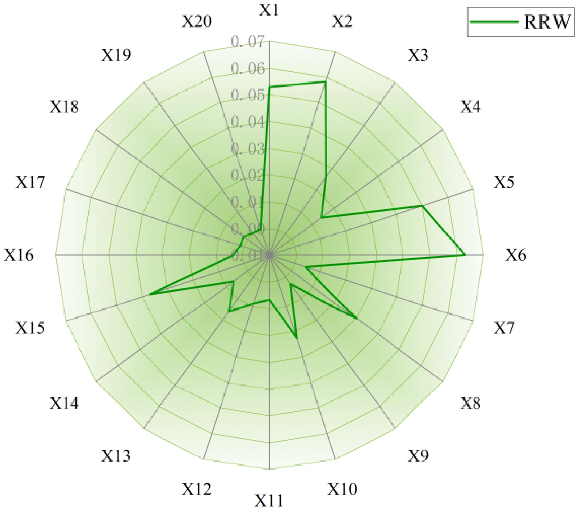 To further validate critical risk factors identified through ROV, this study employs the Birnbaum importance measure (BIM) and risk reduction worth (RRW)[27] as commonly used indicators in importance analysis. These can be used to quantify the contribution and influence of root nodes on leaf nodes, thereby determining the risk factors that need to be prioritized for prevention and control.