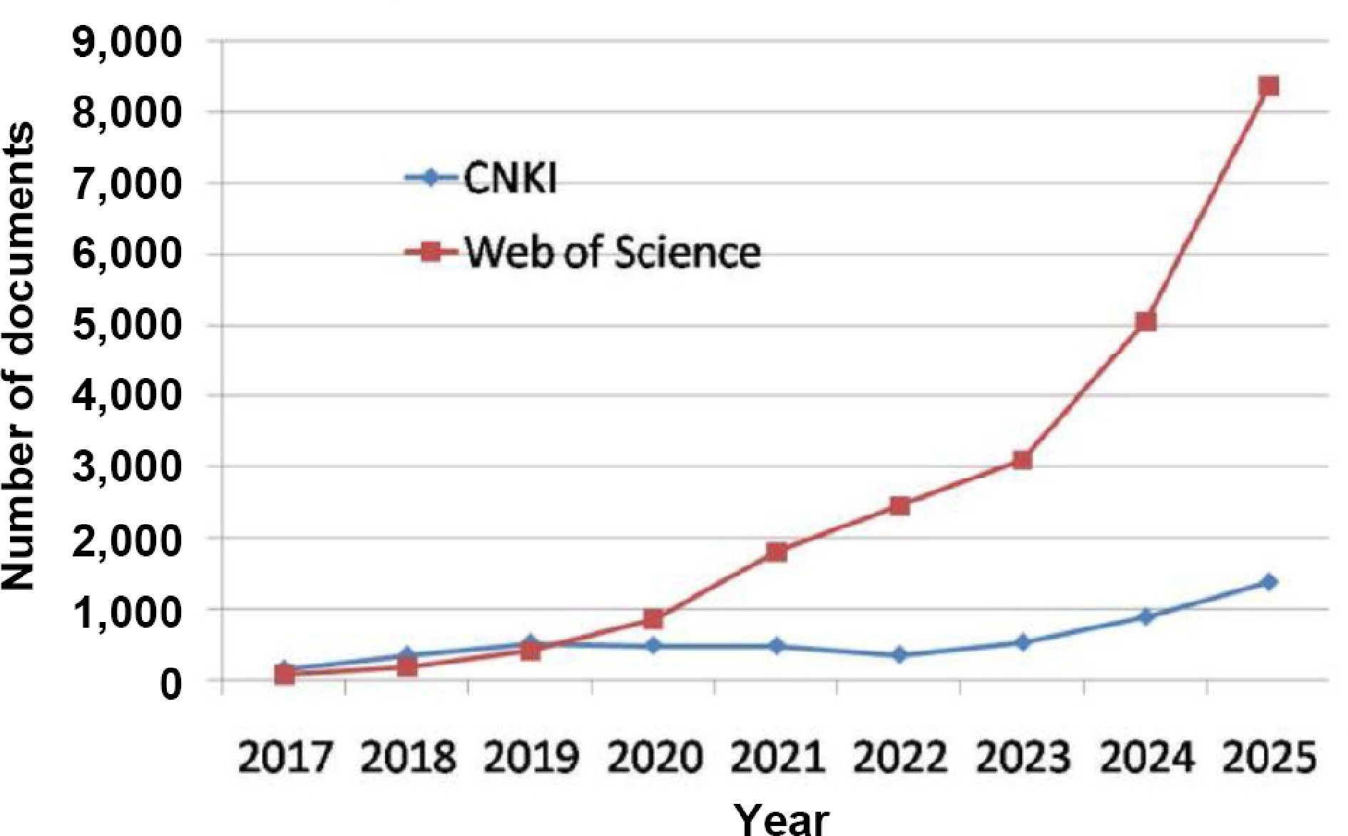 The current trends on AI SS investigations worldwide can be seen from the literature statistics obtained from the Web of Science and CNKI (the largest data base of Chinese language research documents, Fig. 1). From the trend of data and curve potential in Fig. 1, it can be seen that the number of documents on AI SS has increased sharply in recent years, proving that AI SS will be increasingly important in the future.