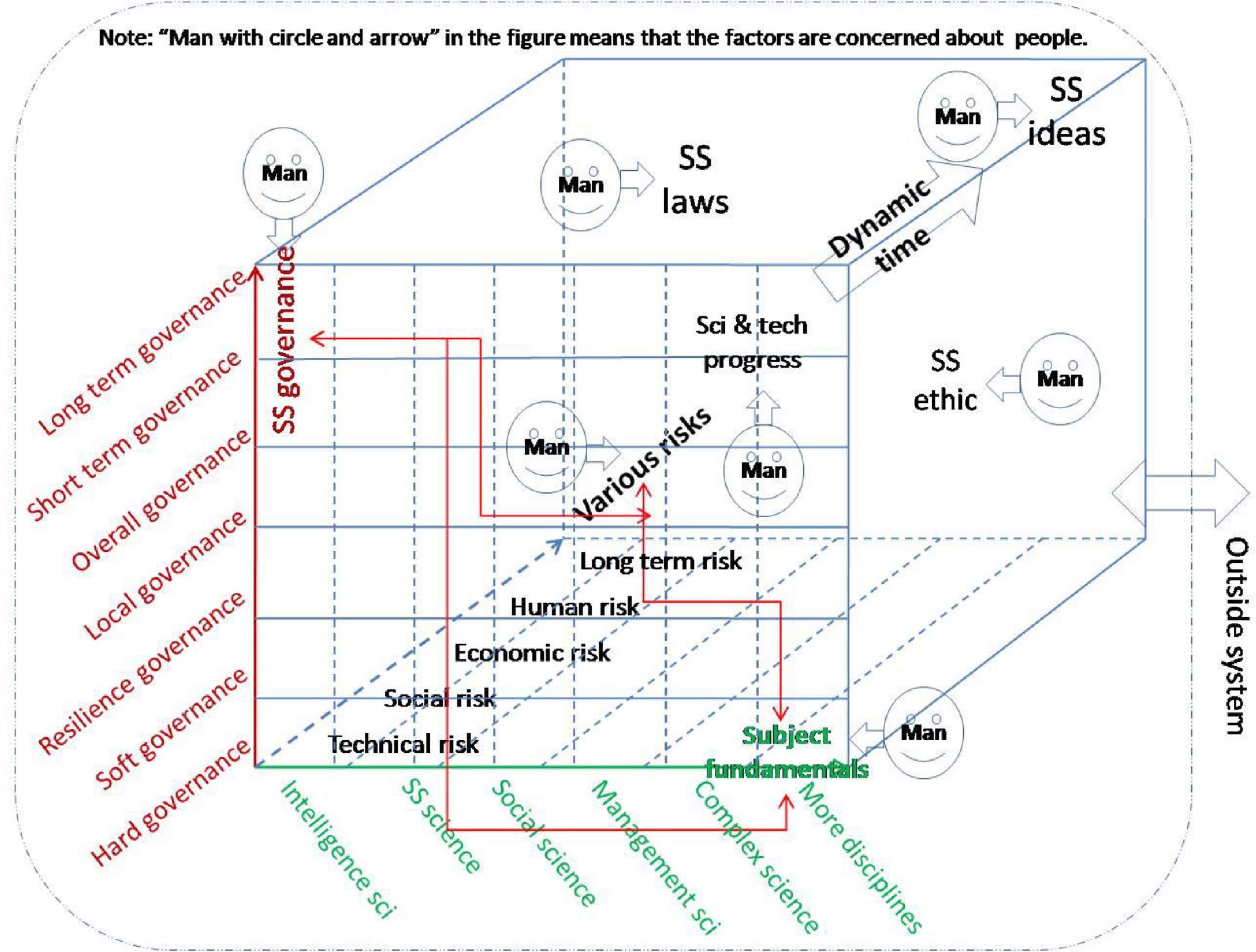 It can be seen from Figs. 2−5 that the common research directions of the three disciplines are SS concepts, laws, ethics, dynamics, etc. All components and elements involve human factors, and form a complex system. In addition, the goals of the three new disciplines are all for SS. From the above, some important general research directions of these three new disciplines can be inferred and forecasted[38].