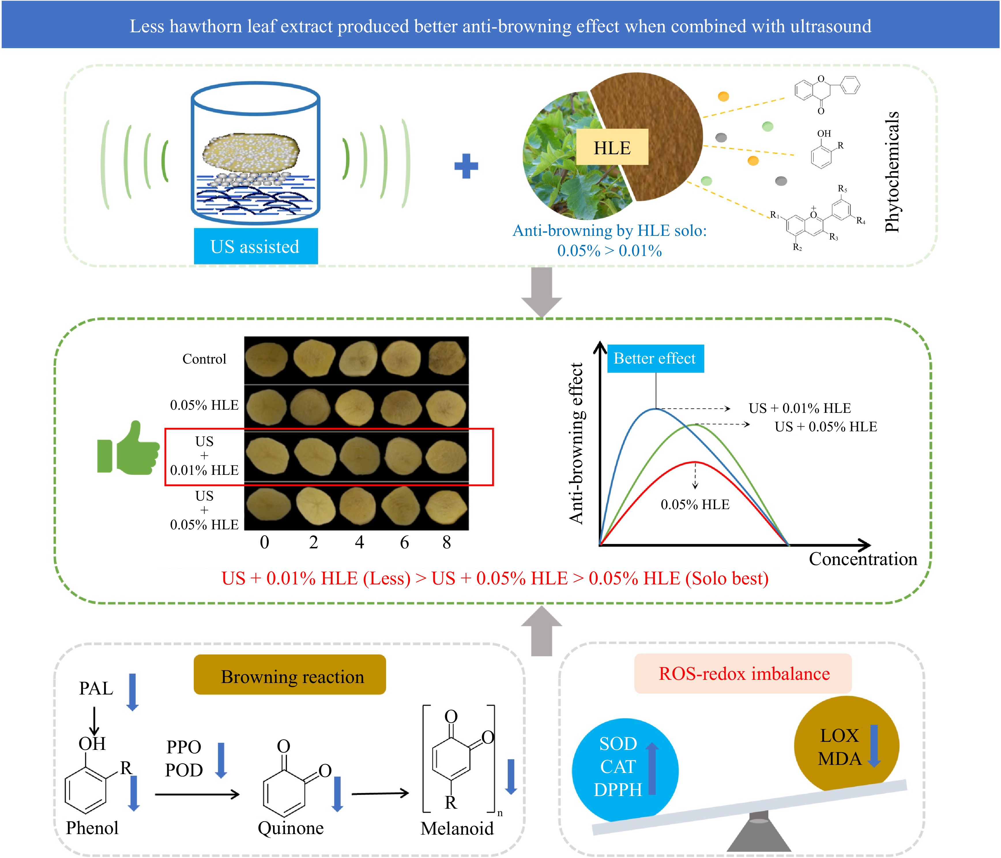 Less hawthorn leaf extract produced a better anti-browning effect when combined with ultrasound: a case study in fresh-cut potatoes