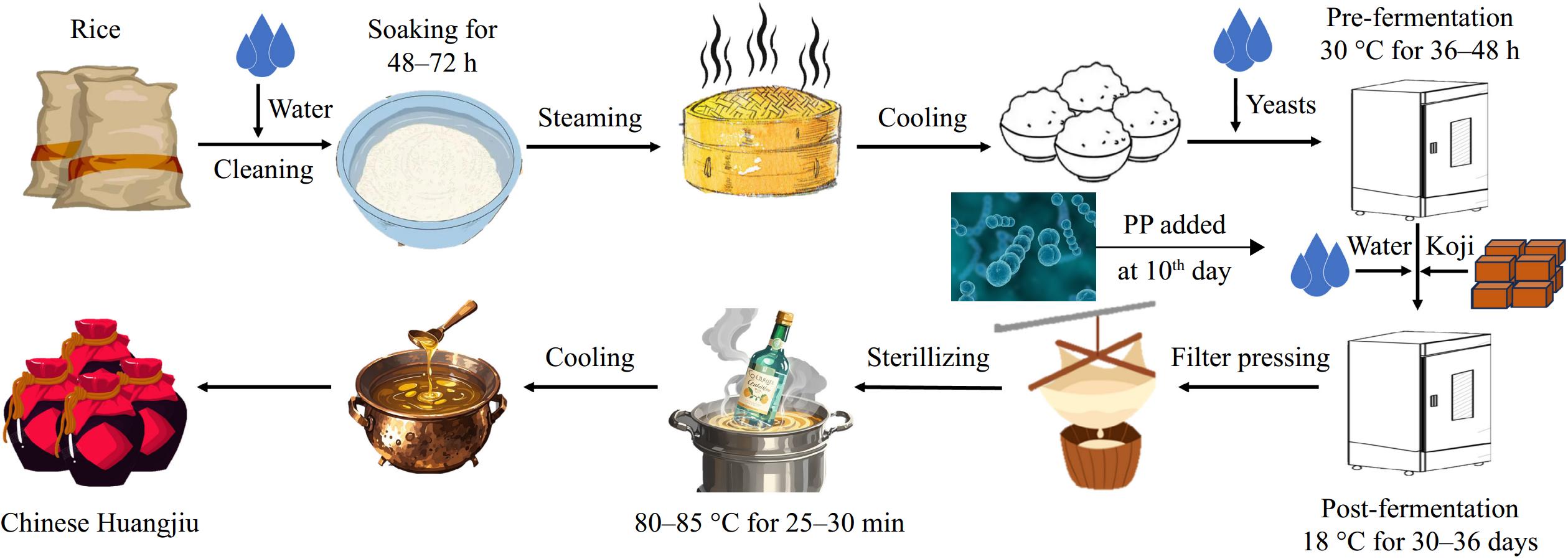 All three groups of Huangjiu (SC, S. cerevisiae; SK, BTN2 knockout strain; SPK, BTN2 knockout strain with PP) were produced according to the method described by Fang et al.[23] (Fig. 1). PP was added on Day 10 of fermentation.