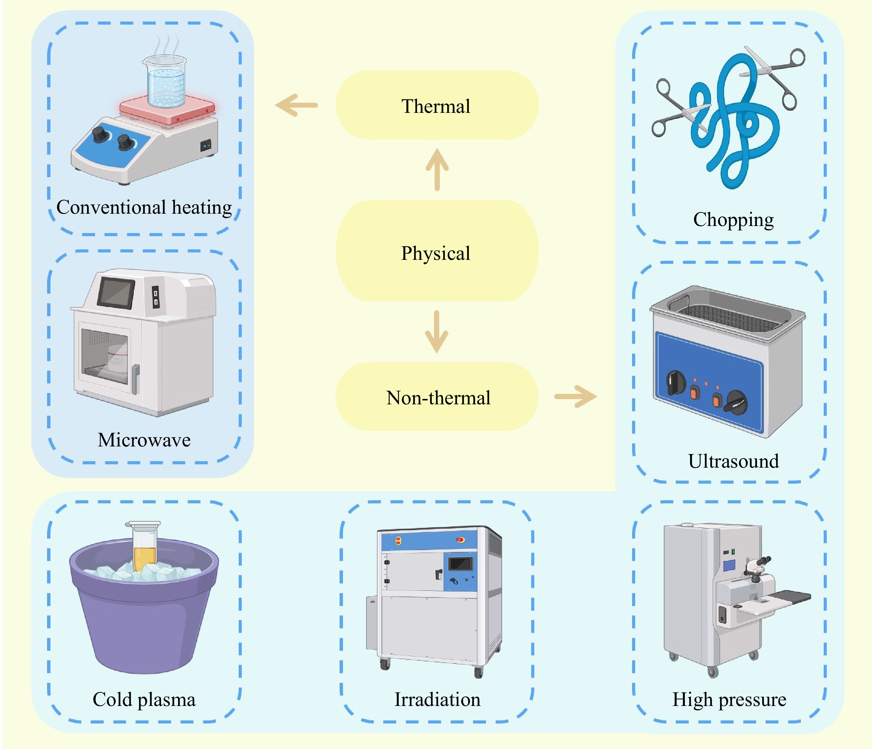 • High-pressure treatment applies pressures above 100 MPa via fluid media, ensuring uniform pressure distribution based on the isostatic principle, which can induce the penetration of water within the protein to result in the hydration of protein chains[17]. This effect can impact the behavior of fish proteins, such as denaturation, unfolding, and aggregation. Since high pressure does not alter the covalent bonds, it preserves protein primary structure but disrupts secondary and tertiary structures by breaking ionic bonds and hydrophobic interactions.