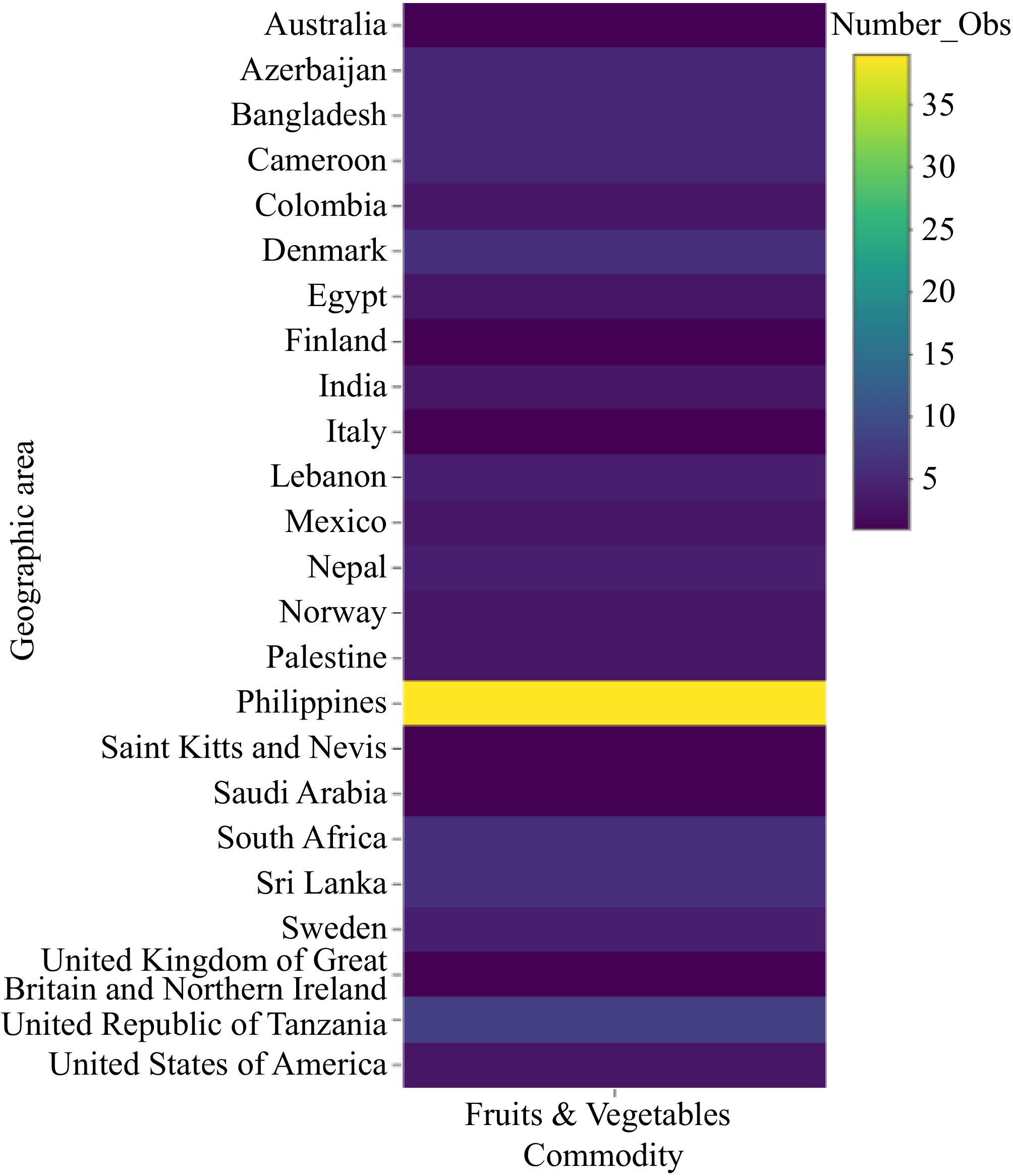 300 billion worldwide by 2030[12]. Figure 1 shows data and information from openly accessible databases, reports (2016–2022), and studies measuring food loss and waste across countries[12].${\$} $ Fruit and vegetable waste significantly influences economic and environmental losses in the US. According to the USDA's '2030 Champions' initiative, the US food industry faces substantial challenges with post-harvest and retail-level food losses, particularly for perishable items like fruits and vegetables. In 2022 alone, programs such as Amazon Fresh and Whole Foods diverted over 108,000 tons of food waste from landfills, transmitting it to sustainable uses, such as composting or anaerobic digestion. These efforts support broader goals to decrease food waste by 2030, reflecting a focus on optimizing distribution systems, enhancing food recovery, and minimizing waste through technological advancements[12].