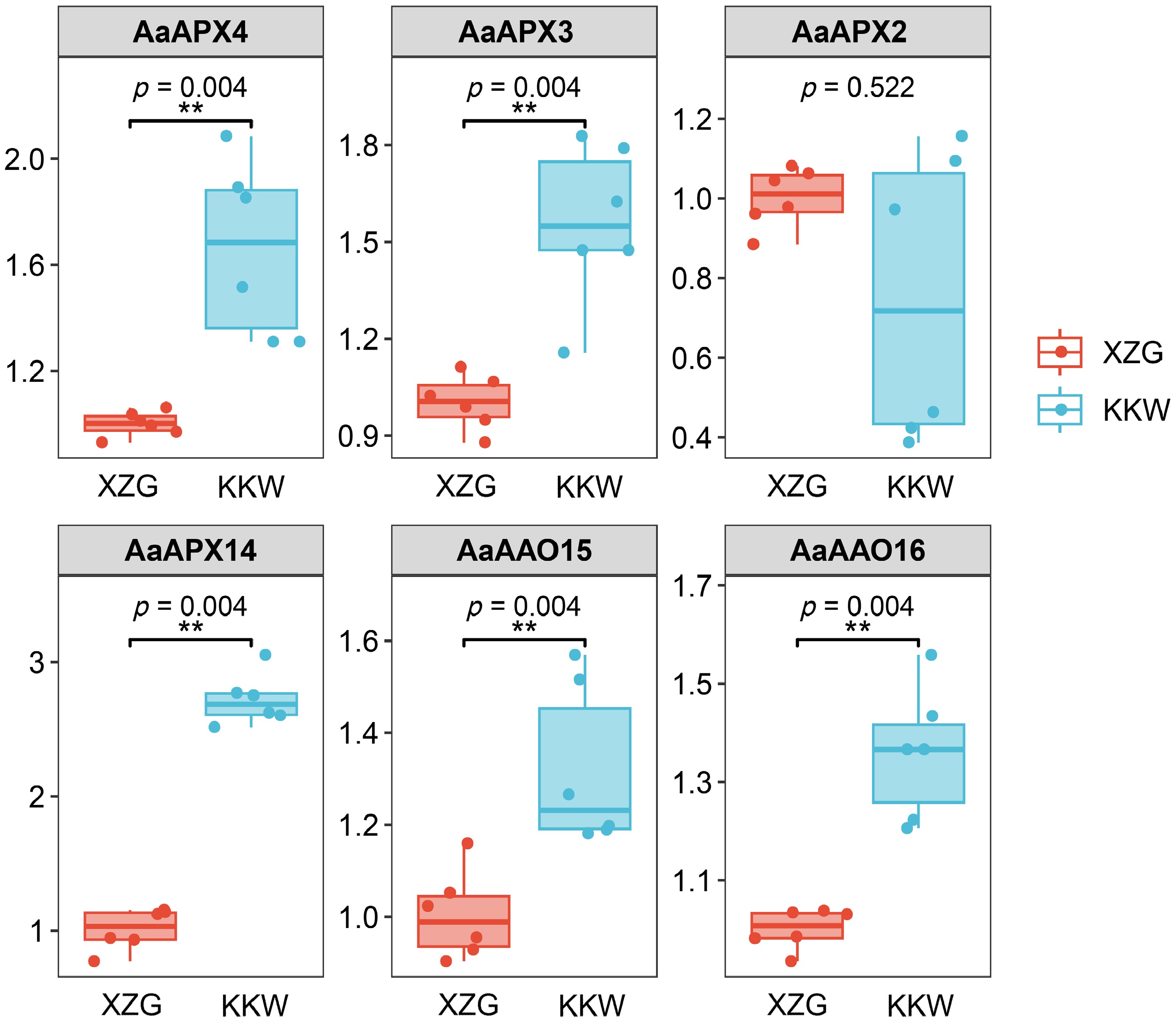 Results of qPCR analysis of the six selected AaAPXs in KKW and XZG.
