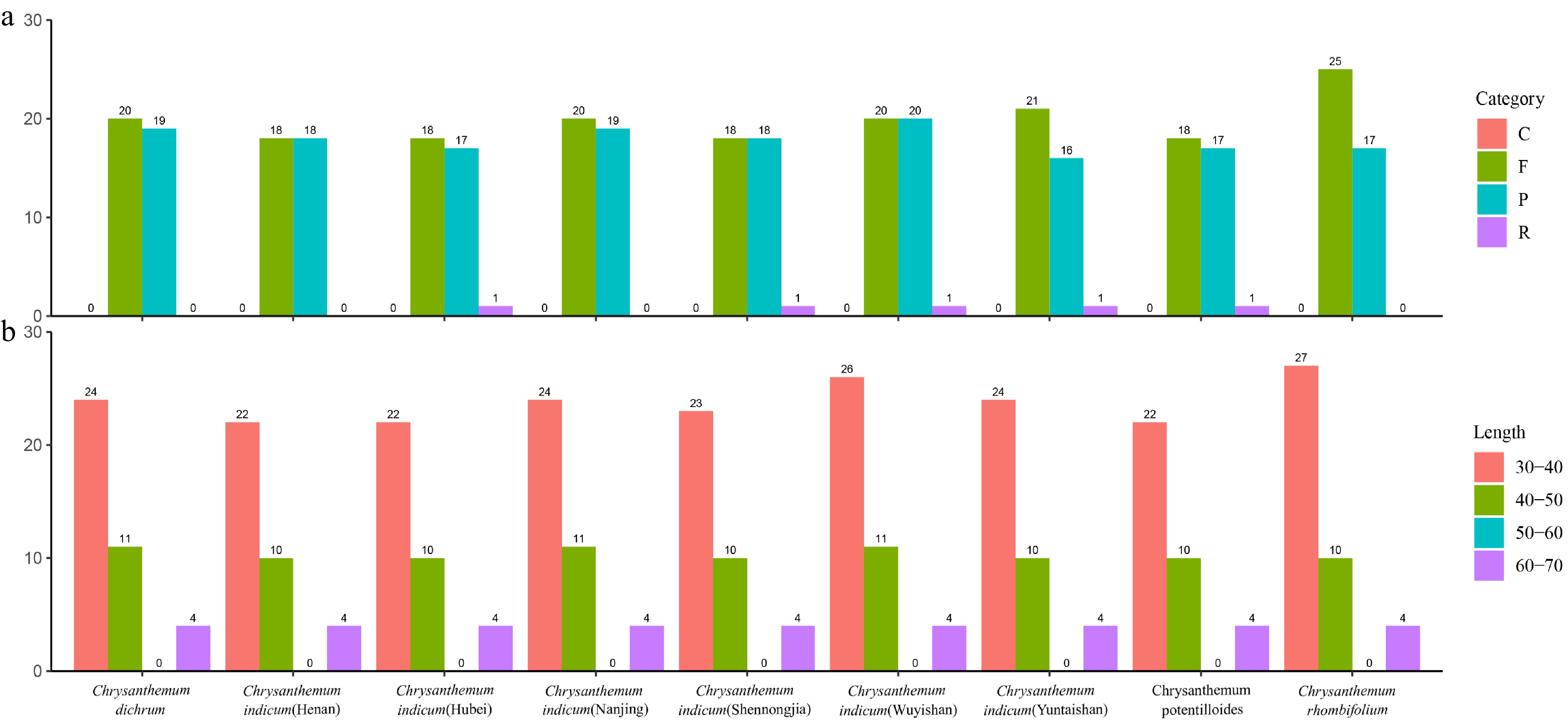 Table 1. Comparison of the chloroplast genome's characteristics in nine Chrysanthemum accessions.