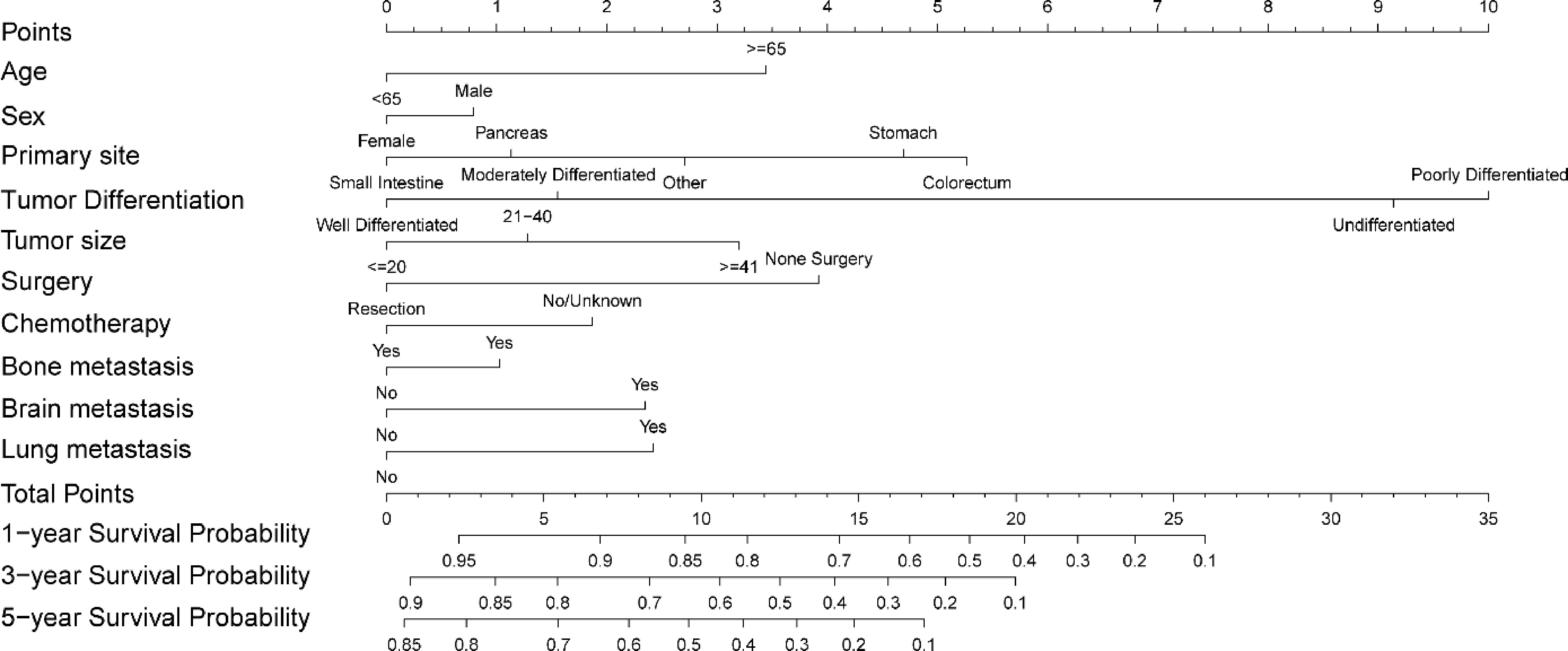 Chen S, Feng Y, Zhang W, Cheng L, Xu J, et al. 2025. A prognostic nomogram of stage IV gastroenteropancreatic neuroendocrine neoplasms establishment based on the SEER database. Gastrointestinal Tumors 12: e011 doi: 10.48130/git-0025-0010