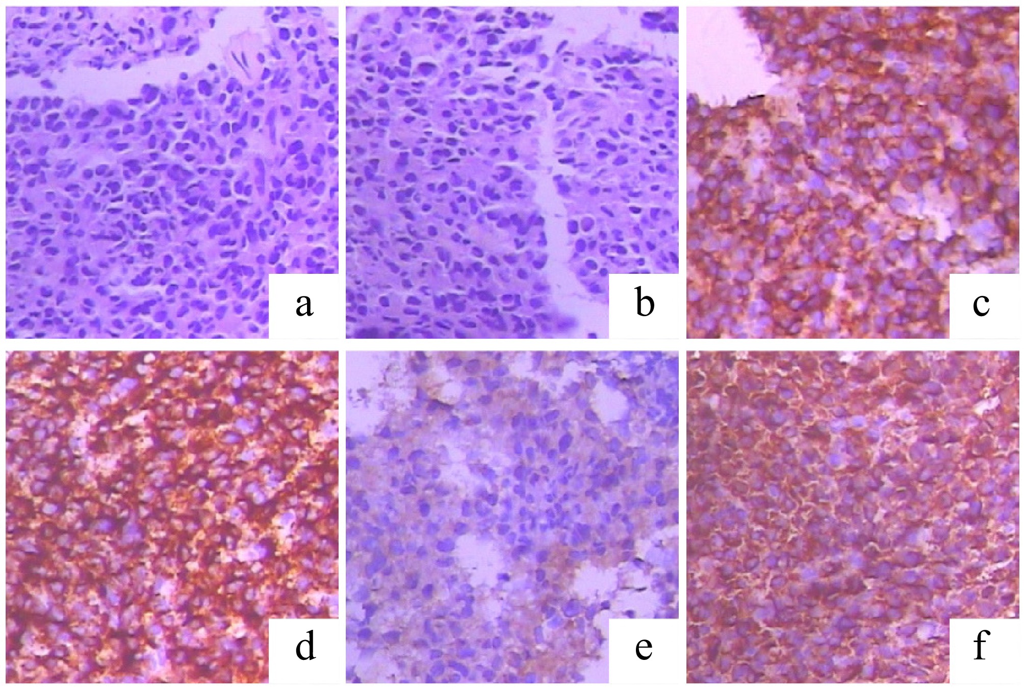 Histopathological and immunohistochemical (IHC) features of the left rib mass, diagnostic of plasmacytoma. (a), (b) Hematoxylin and eosin (H&E) staining reveals sheets of monomorphic plasma cells. (c), (d) The neoplastic cells show strong and diffuse positivity for the plasma cell markers (c) CD38 and (d) CD138. (e), (f) IHC staining demonstrates lambda light chain restriction, supporting a monoclonal plasma cell proliferation: (f) positive for lambda light chains; (e) negative for kappa light chains.