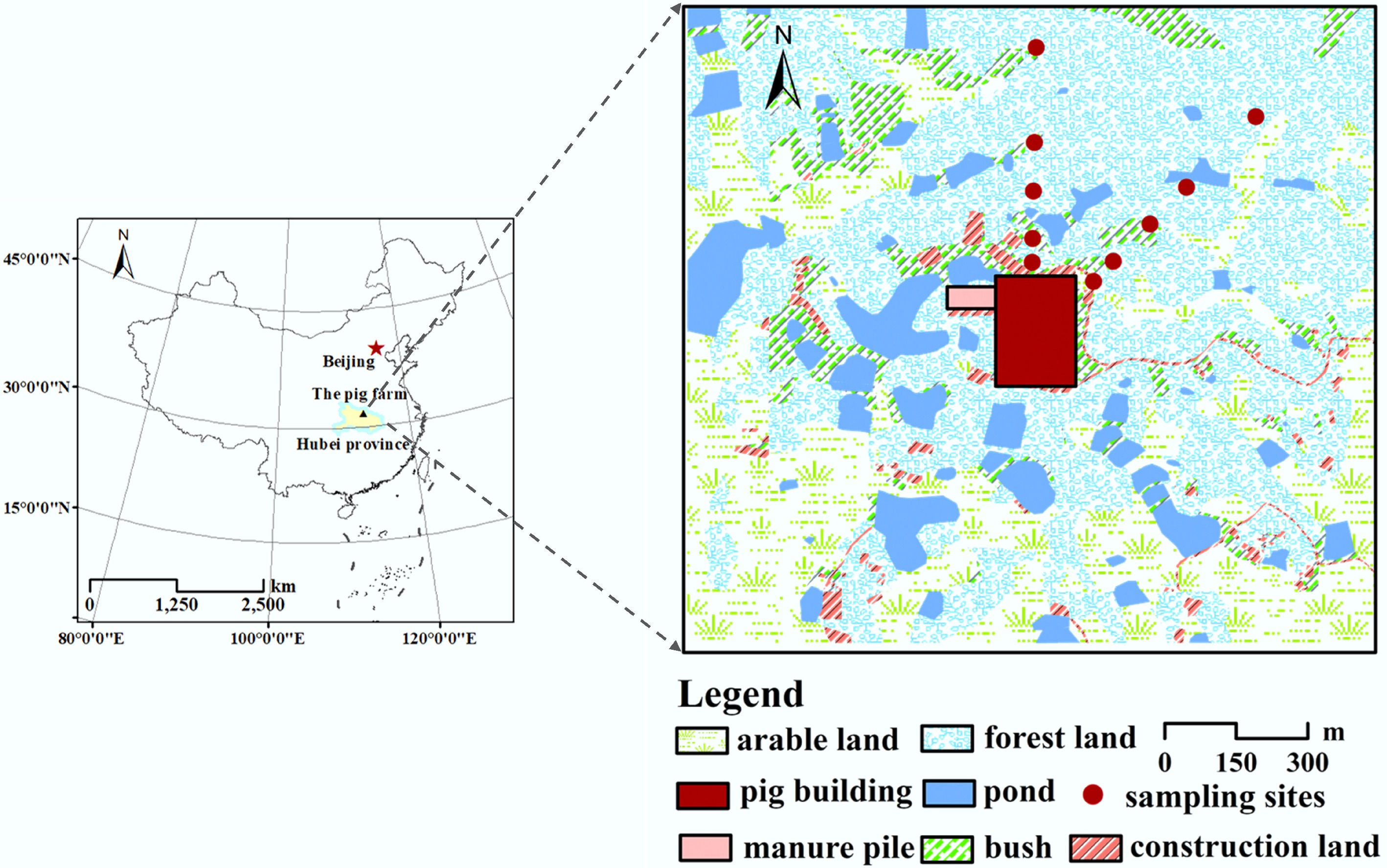 To address these knowledge gaps, this study investigated N2O emissions near the source area of an intensive pig farm in south-central China. The objectives were to: (1) clarify the fate of NH3 deposition from animal farming by quantifying N2O emissions as one pathway and to establish the corresponding emission factor; and (2) determine if NH3 deposition as different from oxidised N deposition (e.g., NO3− deposition), by directly supplying substrate for nitrification, enhances more N2O emissions in terrestrial natural ecosystems, and to verify nitrification as the dominant source of the emitted N2O through microbiological evidence.