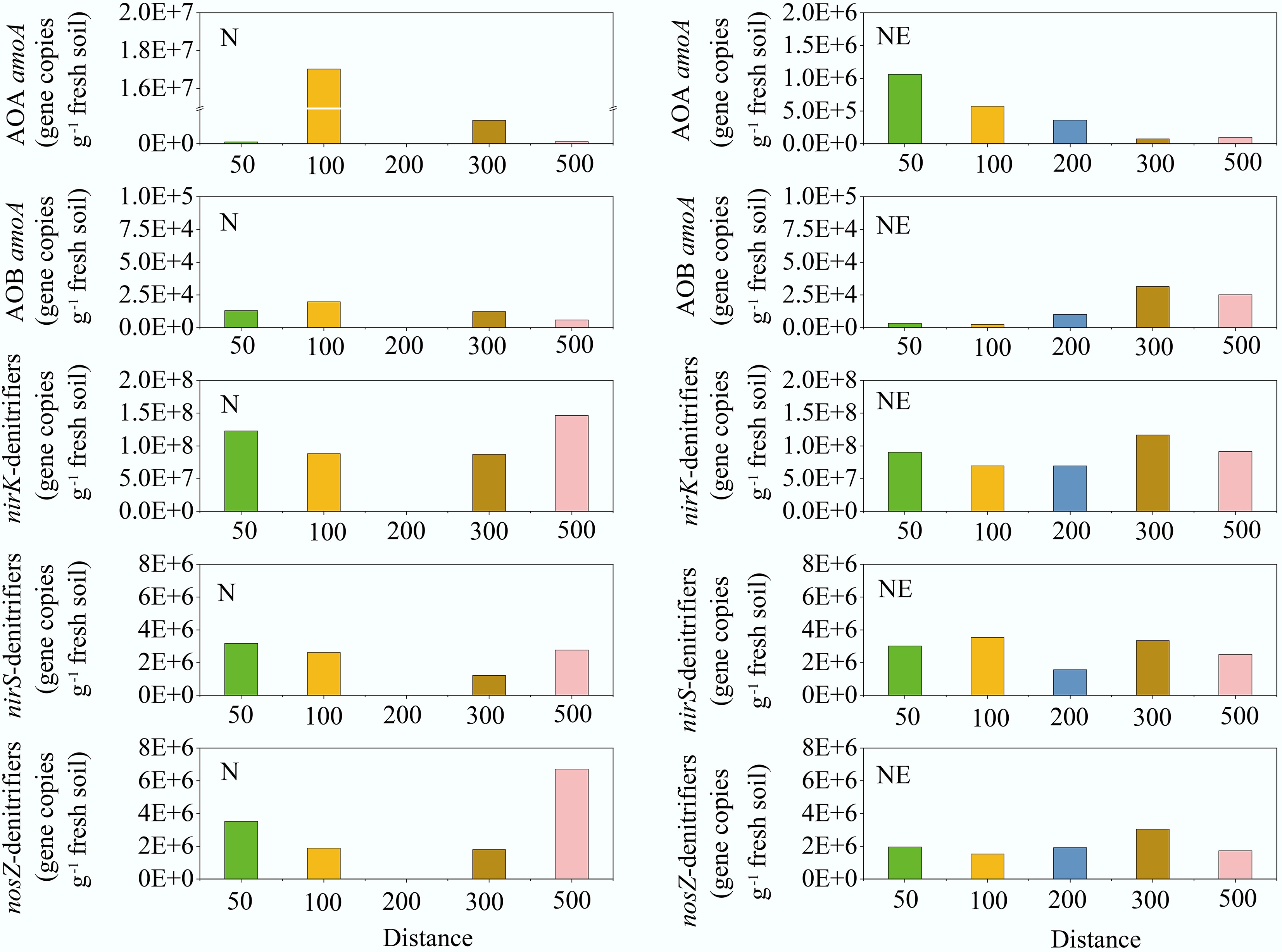 Abundances of AOA amoA, AOB amoA, nirS, nirK, and nosZ genes