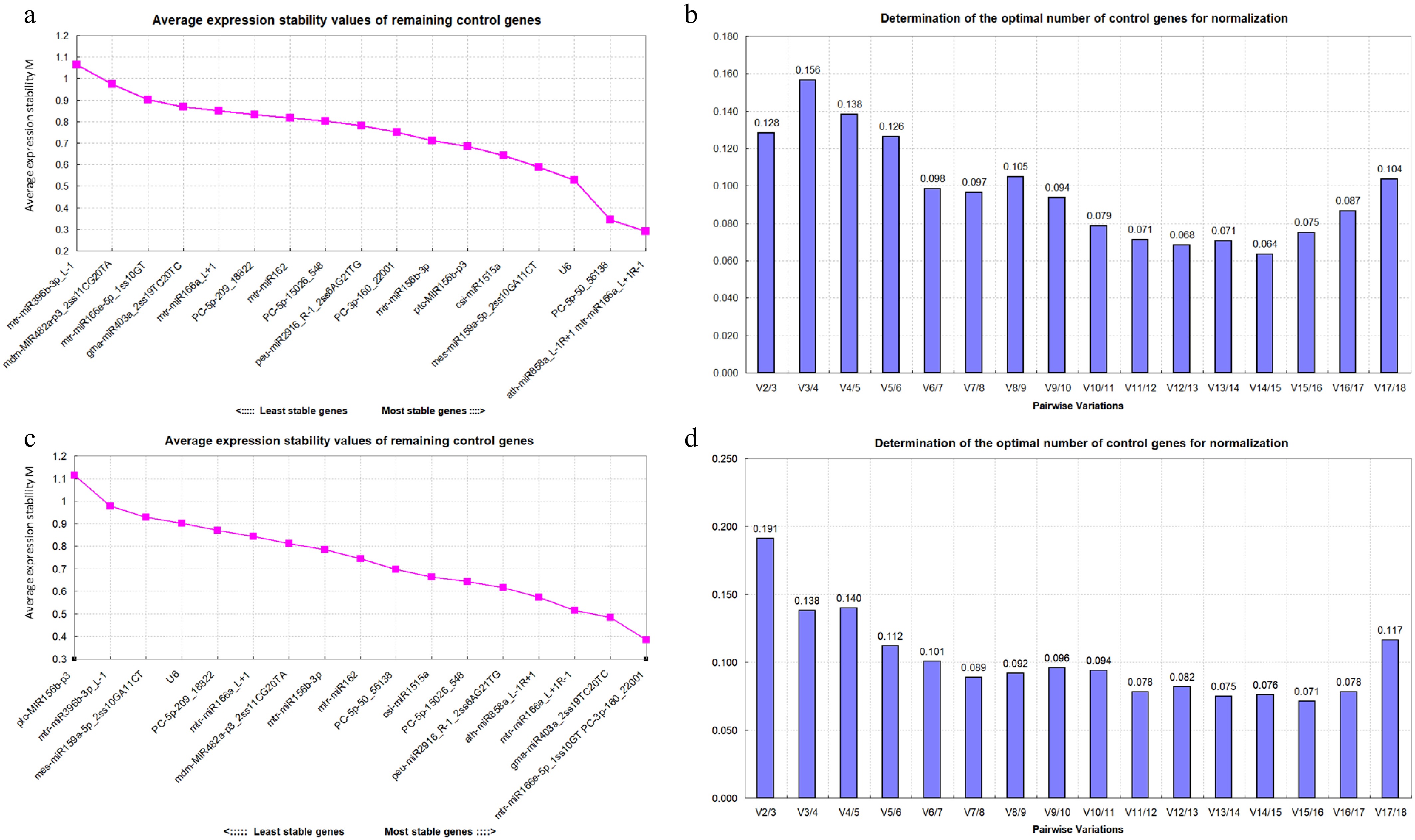 Table 4.  The 18 candidate internal parameters were sorted by comprehensive miRNAs analysis in drought stress.