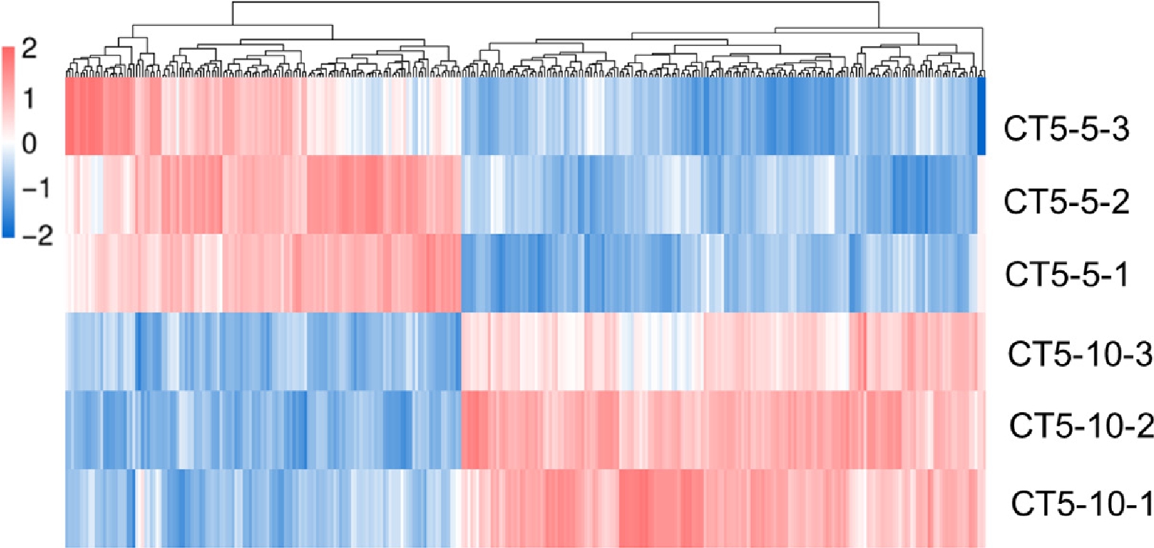 • Transcriptome profiling across different time points in I. obliquus revealed a total of 316 DEGs. Among these, 180 were up-regulated, and 136 were down-regulated (Fig. 3). Functional annotations of differentially expressed genes in CT5-5_vs_CT5-10 were conducted in various databases, with 124 in COG, 186 in GO, 158 in KEGG, 96 in KOG, 272 in NR, 179 in Pfam, and 127 in Swiss-Prot.