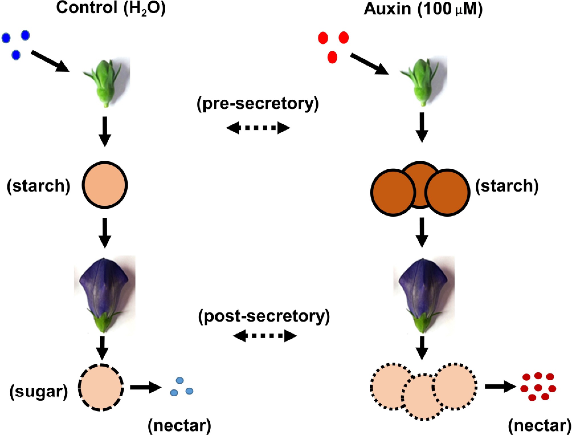 Graphical illustration of the auxin treatment in the nectaries of P. grandiflorus.