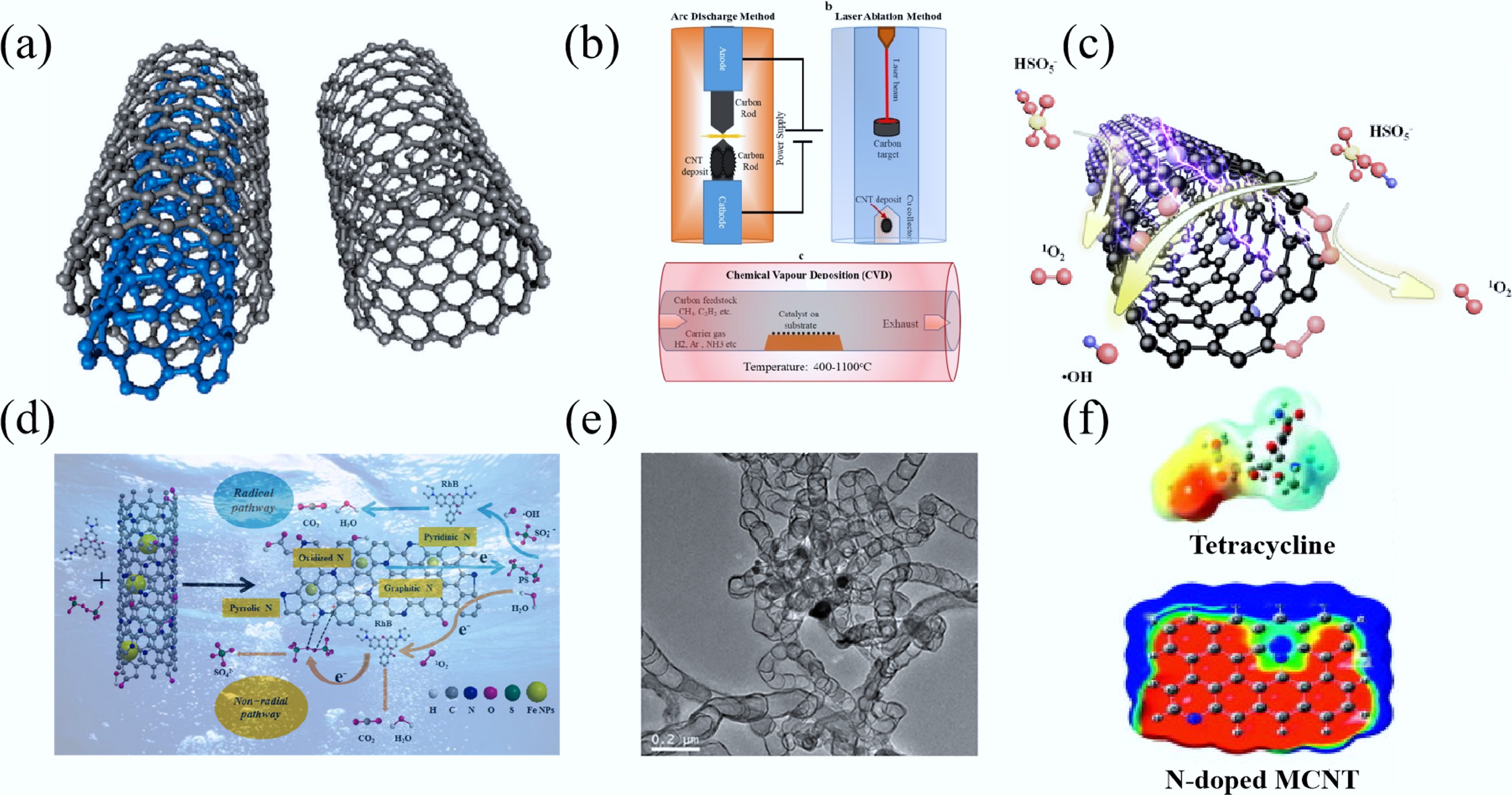In atmospheric environments, CNMs are prone to aging induced by ambient air pollutants, including physical adsorption or condensation of contaminants and heterogeneous reactions with trace gases such as SO2 and NOX[102]. This aging process involves a reduction in disordered carbon and C-H functional groups in CNMs[102]. In a separate study, Liu et al. simulated atmospheric aging by examining the oxidation of single-walled carbon nanotubes (SWCNTs) by ozone and hydroxyl radicals, and found that oxidation facilitated carboxyl functionalization without altering cytotoxic endpoints[103].
